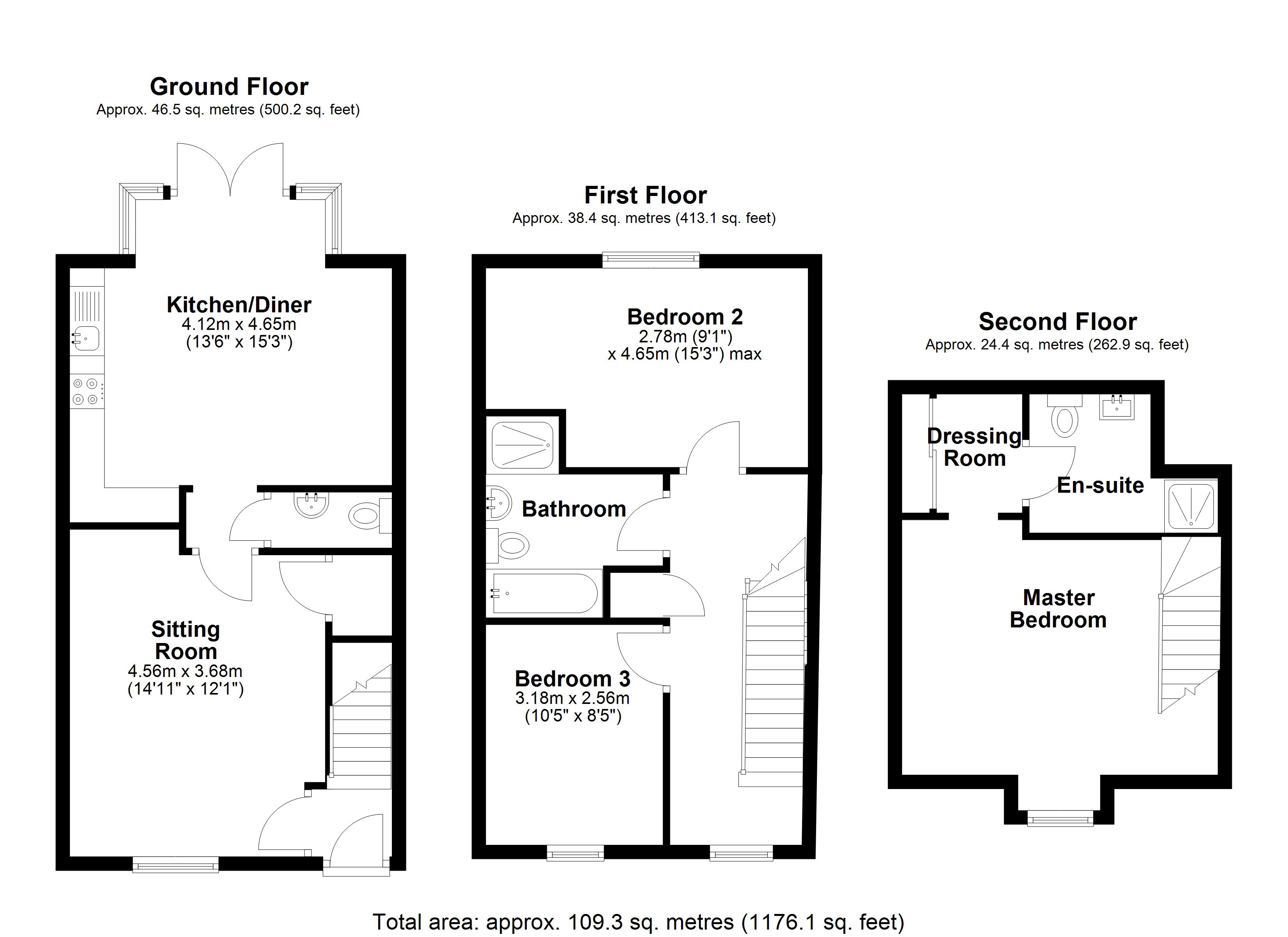 Bathrooms: 2.5 (family bathroom, ensuite, and ground−floor W/C)