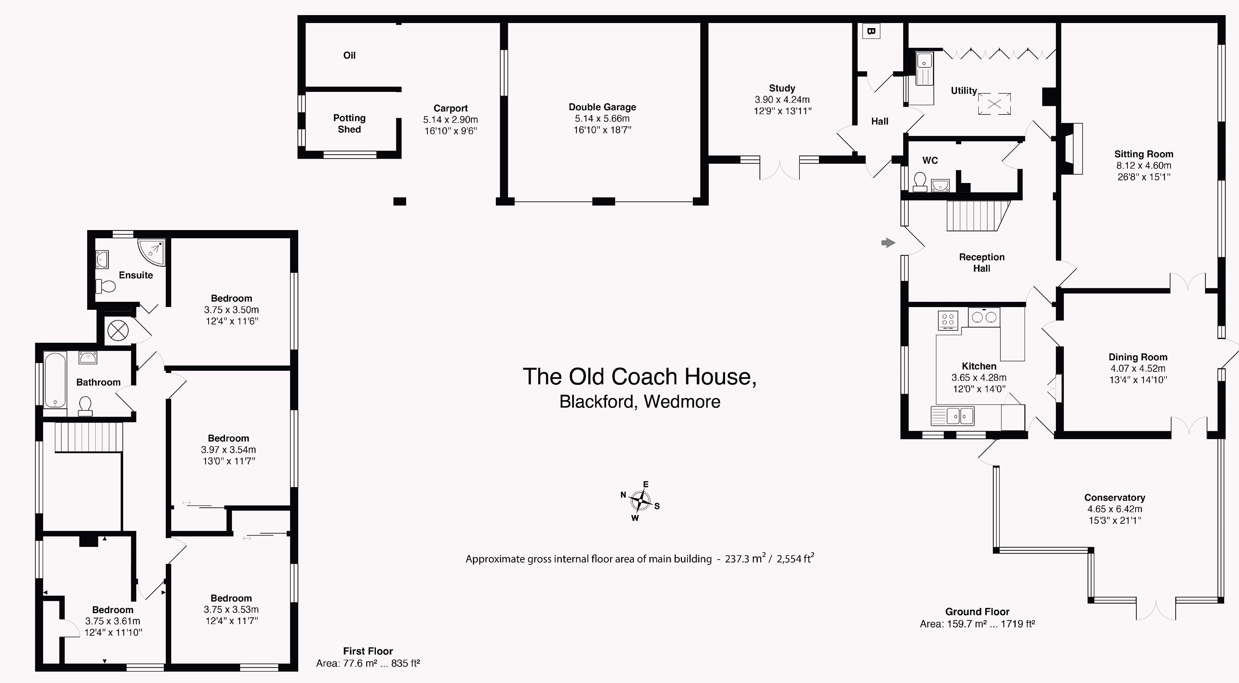 Freehold. Not listed, no TPO's. Mains electricity, water with private drainage and oil-fired central heating and hot water. Council Tax Band G. EPC Rating F.There will be a small overage clause on the paddocks.