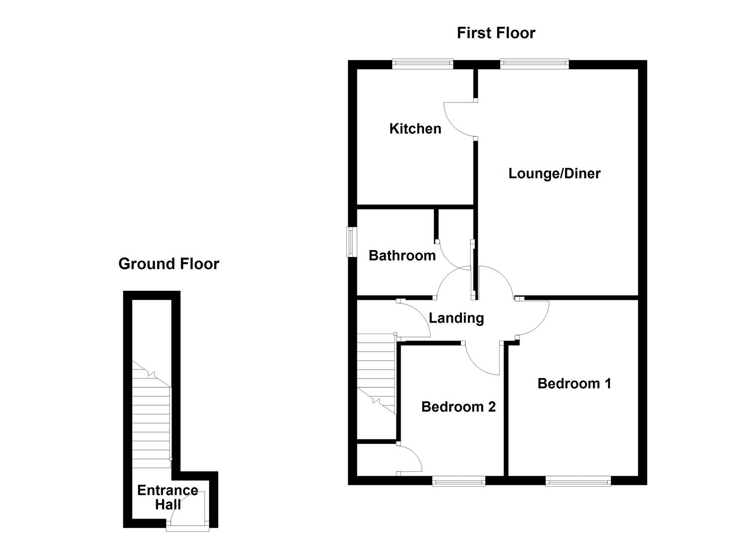 First Floor - Loft access, doors to the two bedrooms, lounge/diner and bathroom.