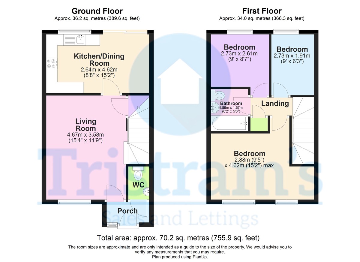Details - SUMMARY Tucked away in the peaceful cul-de-sac of Blake Court, this beautifully presented three-bedroom home offers a generous and well-thought-out living space arranged over two floors. With a total internal floor area of approximately 70.2 square metres (755.9 square feet), the property enjoys a well-balanced layout that enhances both functionality and comfort, making it an ideal choice for families, professionals, and downsizers alike.