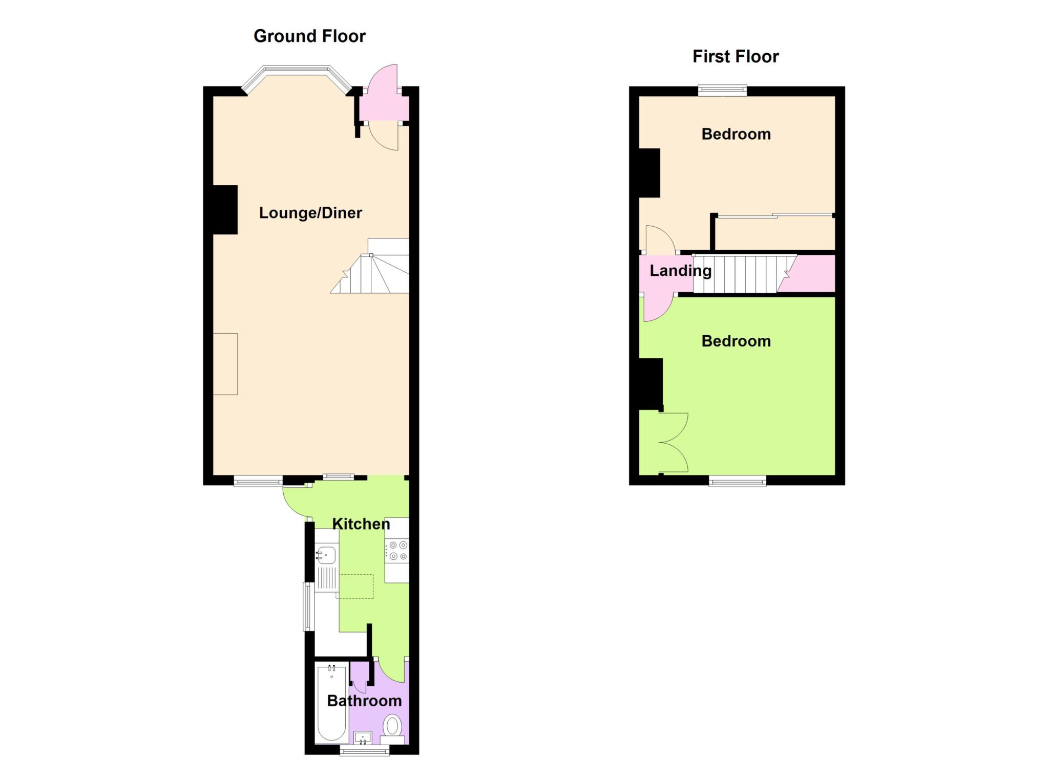 A 2 bed house with lounge/dining room and modern kitchen. PVCu double glazing and gas central heating are installed. There is potential at the rear to create parking if the current shed was removed as there are double gates to the rear service road.