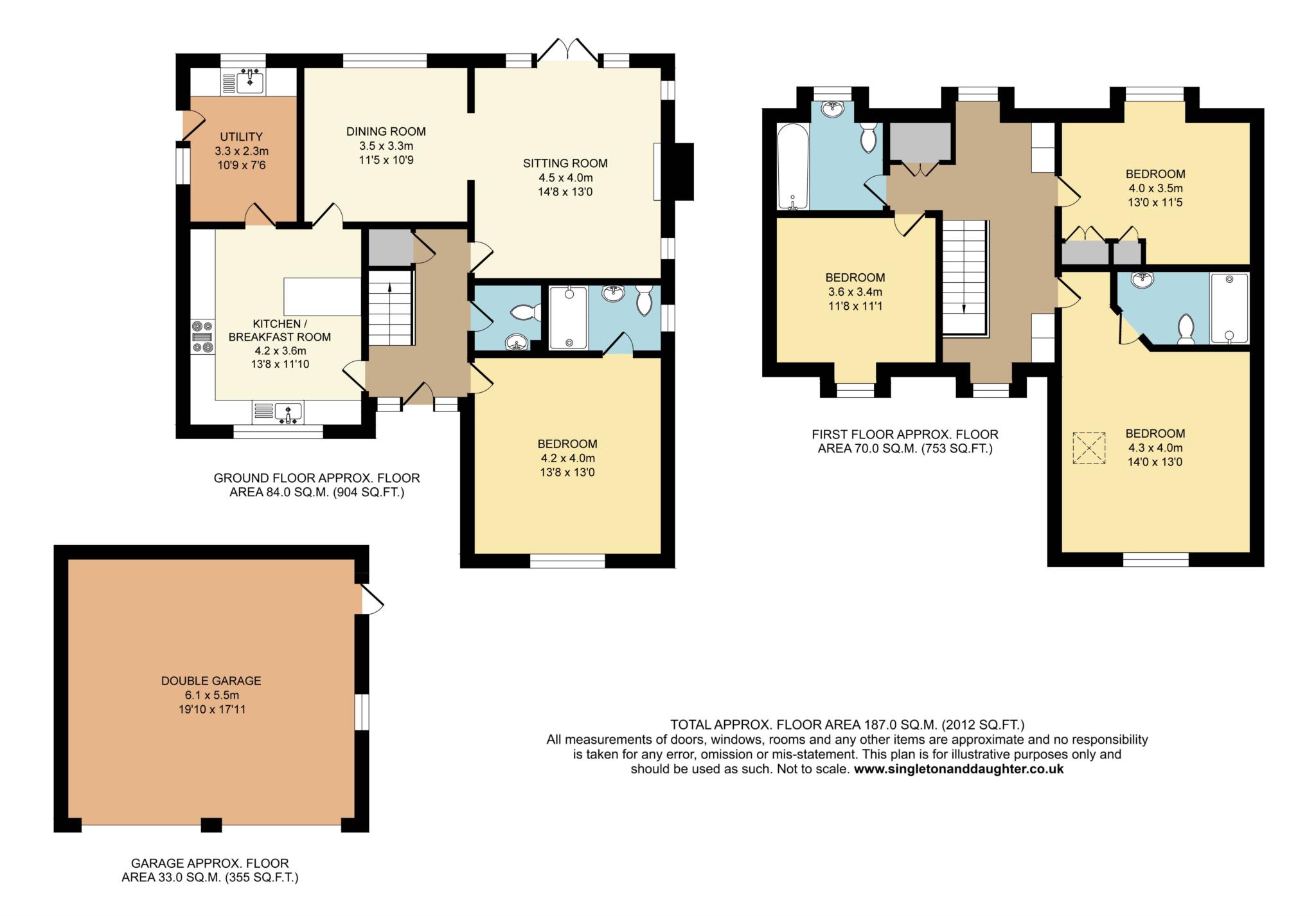 Summary of accommodation: Reception hall, kitchen/breakfast room, dining room, sitting room, utility room, cloakroom, ground floor double bedroom 4 / play room with ensuite shower room. 3 further double bedrooms, family bathroom, ensuite shower to bedroom 1. Double detached garage.