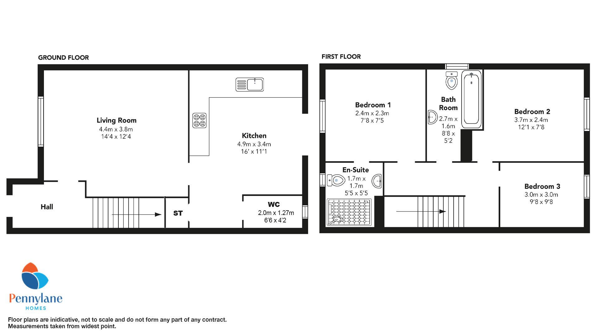 The property is accessed via a welcoming entrance hallway with stairway to upper level. The cosy lounge to the front of the property has a large window flooding the room with natural light. To the rear, the kitchen comprises a combination of wall and floor mounted units with contrasting worktop and white subway style tiling. There is ample space for a small dining table and a convenient downstairs WC with sink and wash hand basin.