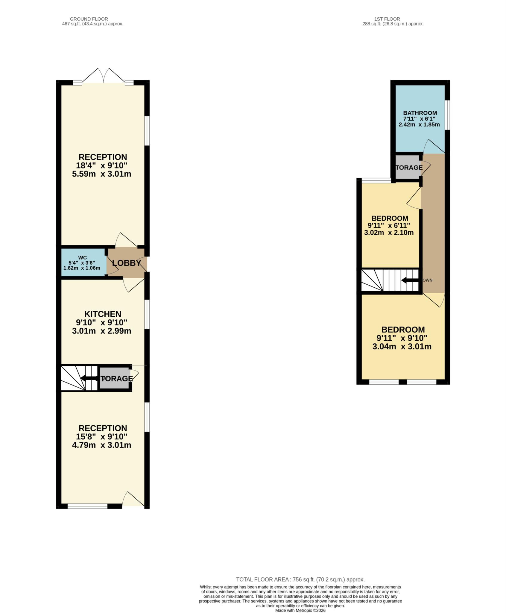 The accommodation comprises two bedrooms, two bright and versatile reception rooms which can be used as a living room and dining room, a newly fitted modern kitchen with ample storage and worktop space, a separate downstairs WC, and a newly refurbished family bathroom upstairs.
