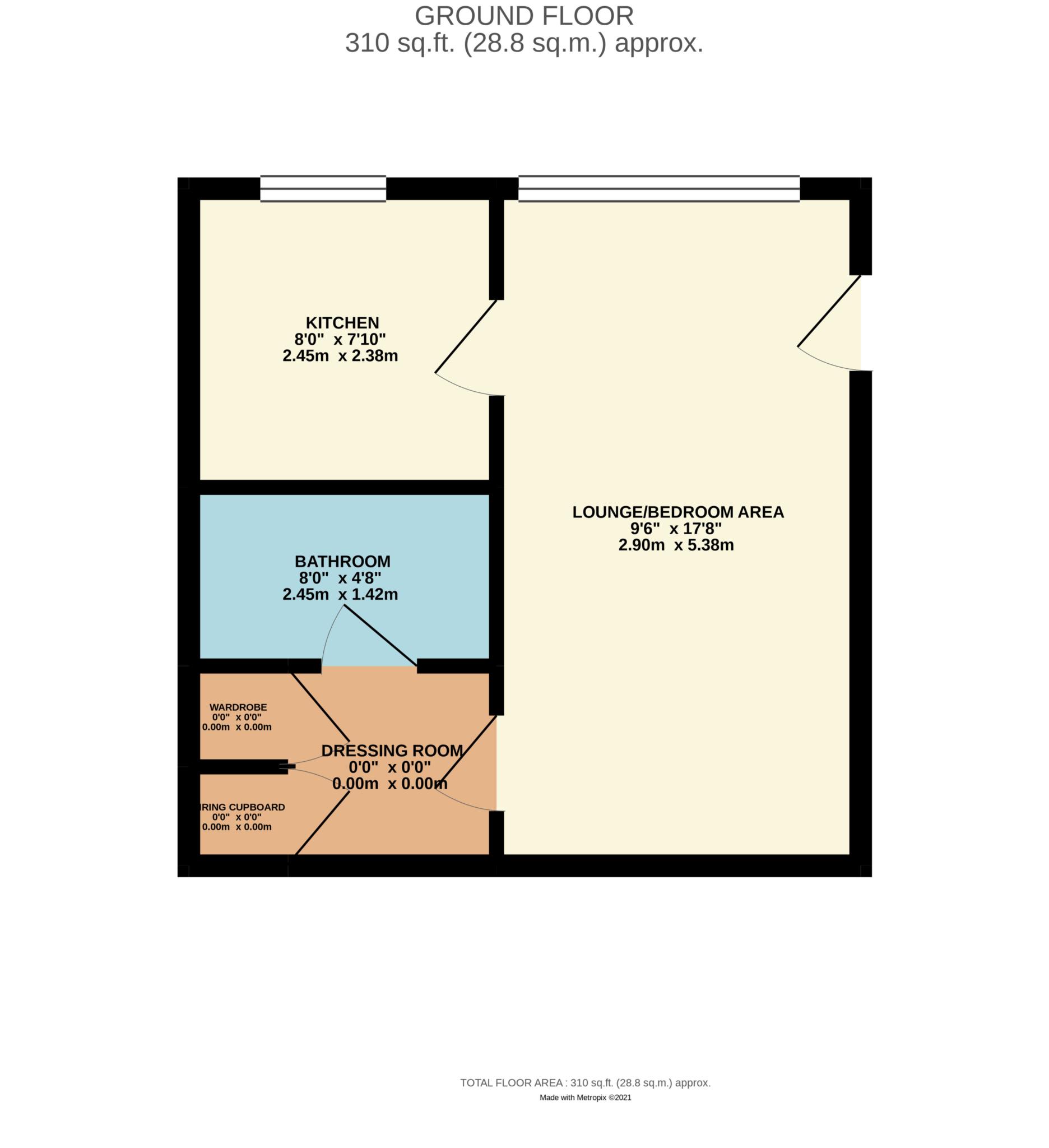 Lounge/Bedroom Area - 17'8" (5.38m) x 9'6" (2.9m)