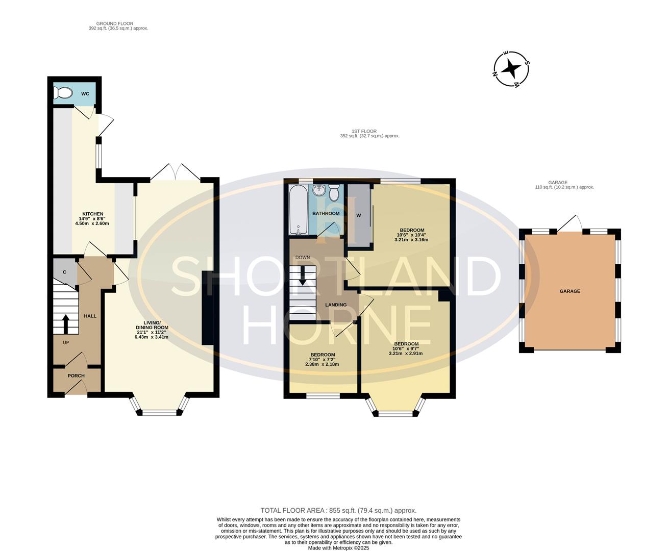 Approx. Total Area: 855 Sq. Ft