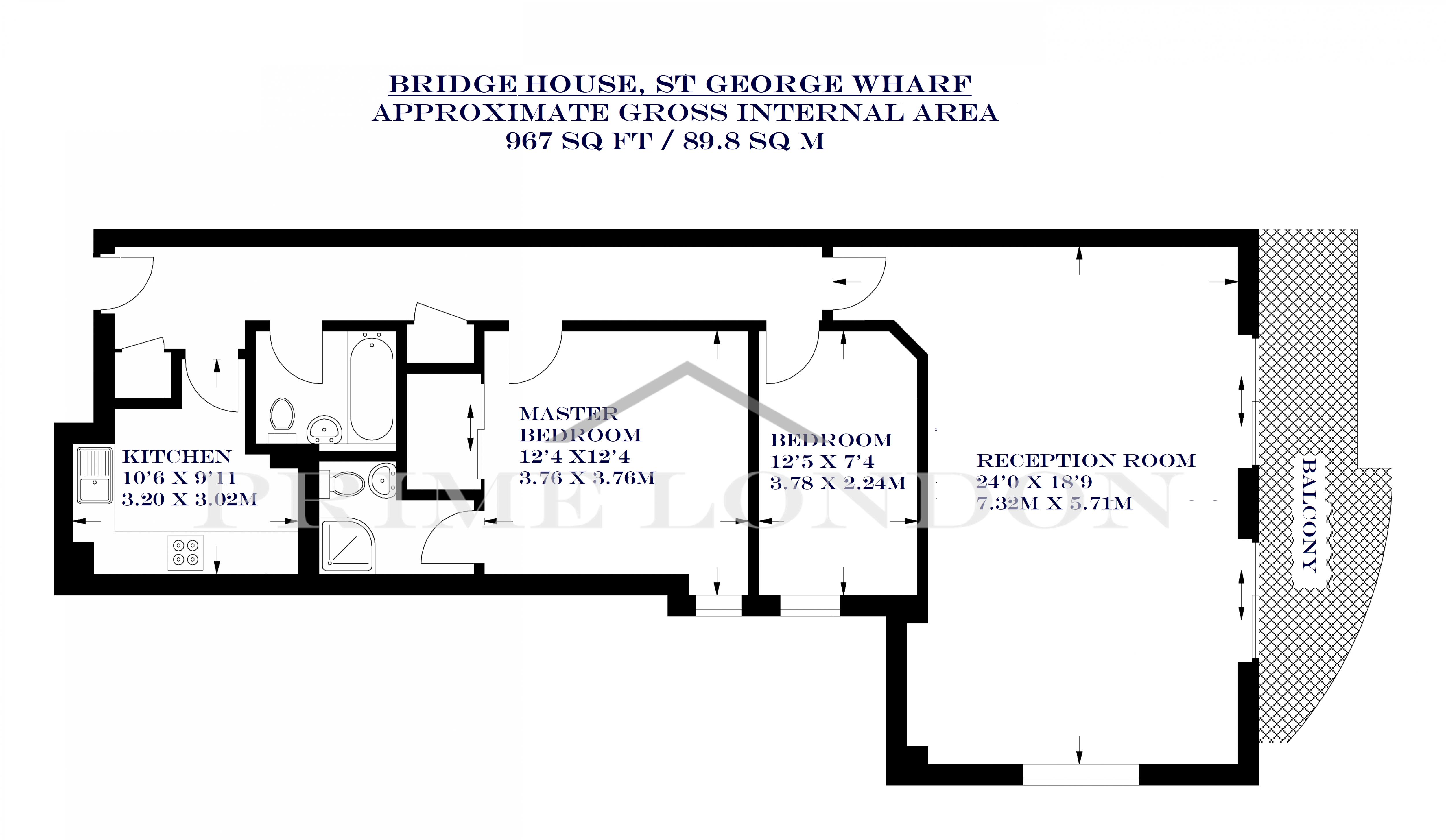 *Video Viewing Available* With an extremely spacious dual-aspect reception with river views, offering excellent entertaining space, this 967 sq ft (89.8 sq m) two bedroom two bathroom apartment is available to lease through Prime London.