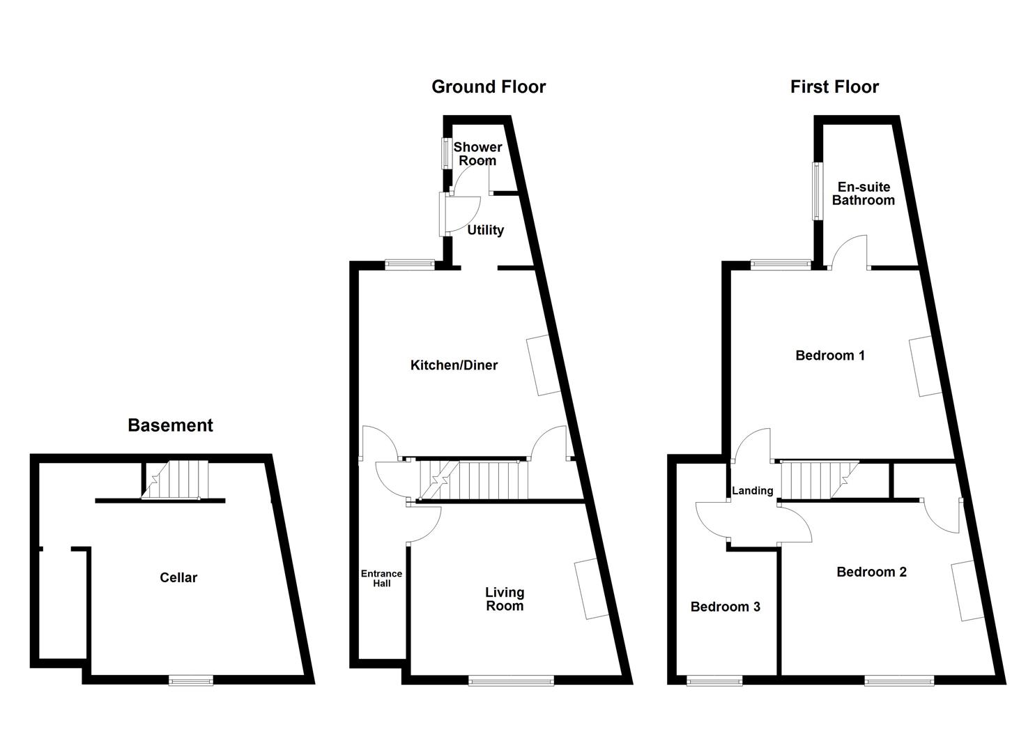 The property briefly comprises of the entrance hall with access down to the cellar, living room, kitchen/diner, separate utility and shower room. The first floor landing leads to three bedrooms (main bedroom with en suite bathroom). Outside to the front is on street parking. To the rear is an enclosed concrete courtyard with brick built storage outbuilding.
