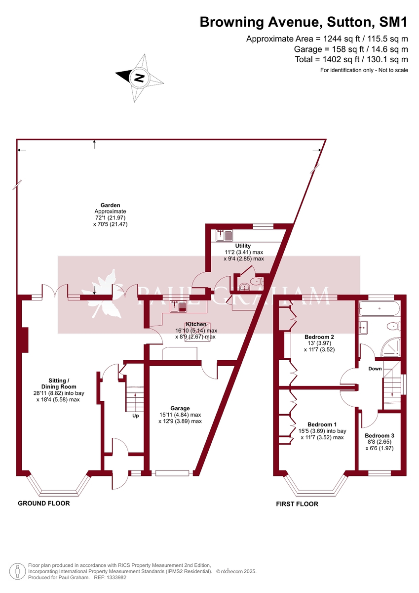 GARDEN 72' 1" x 70' 5" (21.97m x 21.46m) Approximate Maximum