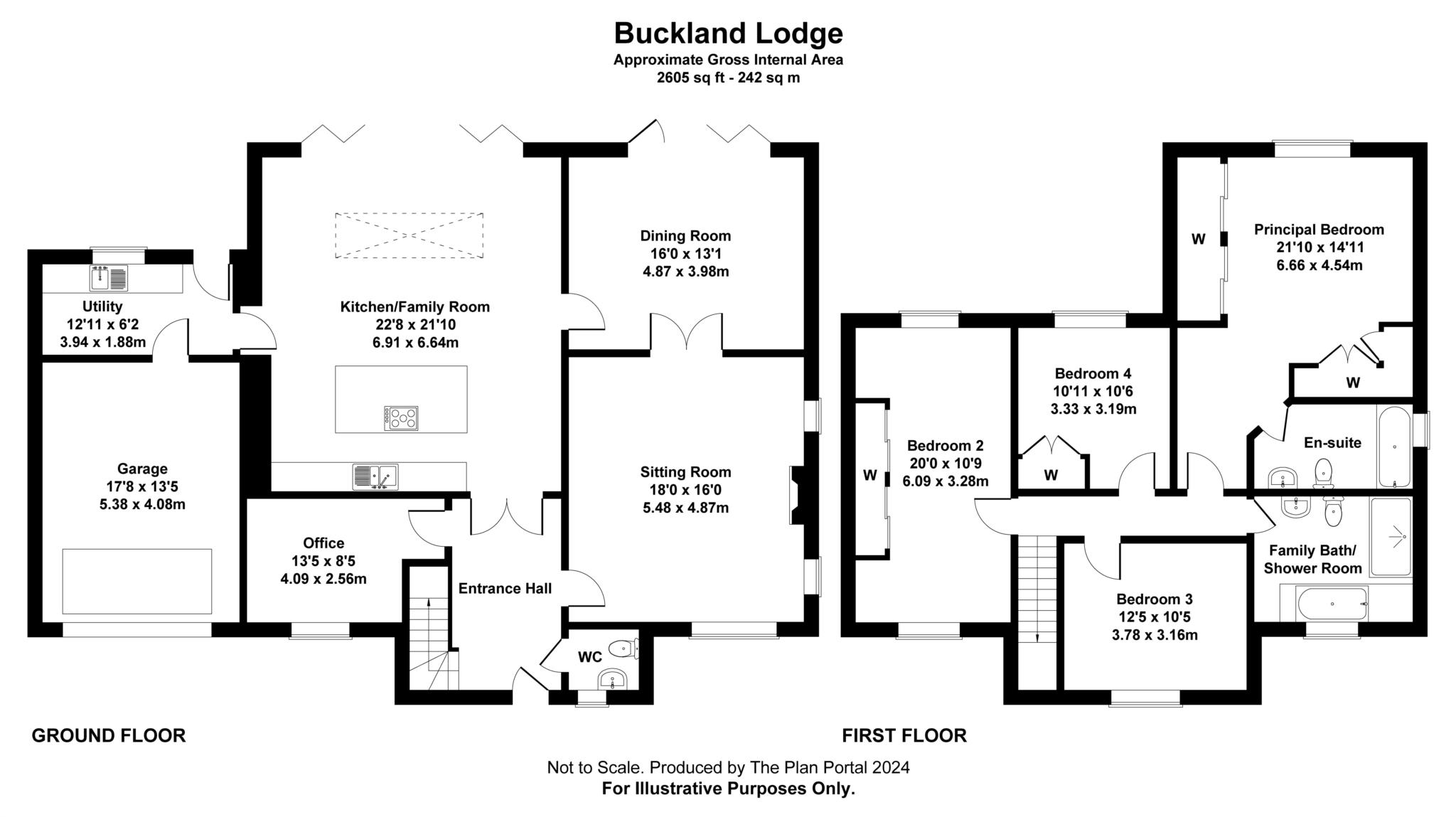 On the first floor you will find four double bedrooms. The principal bedroom has fitted wardrobes and an en suite bathroom. There are fitted wardrobes in two of the other bedrooms and the family bathroom has a bath and separate shower.