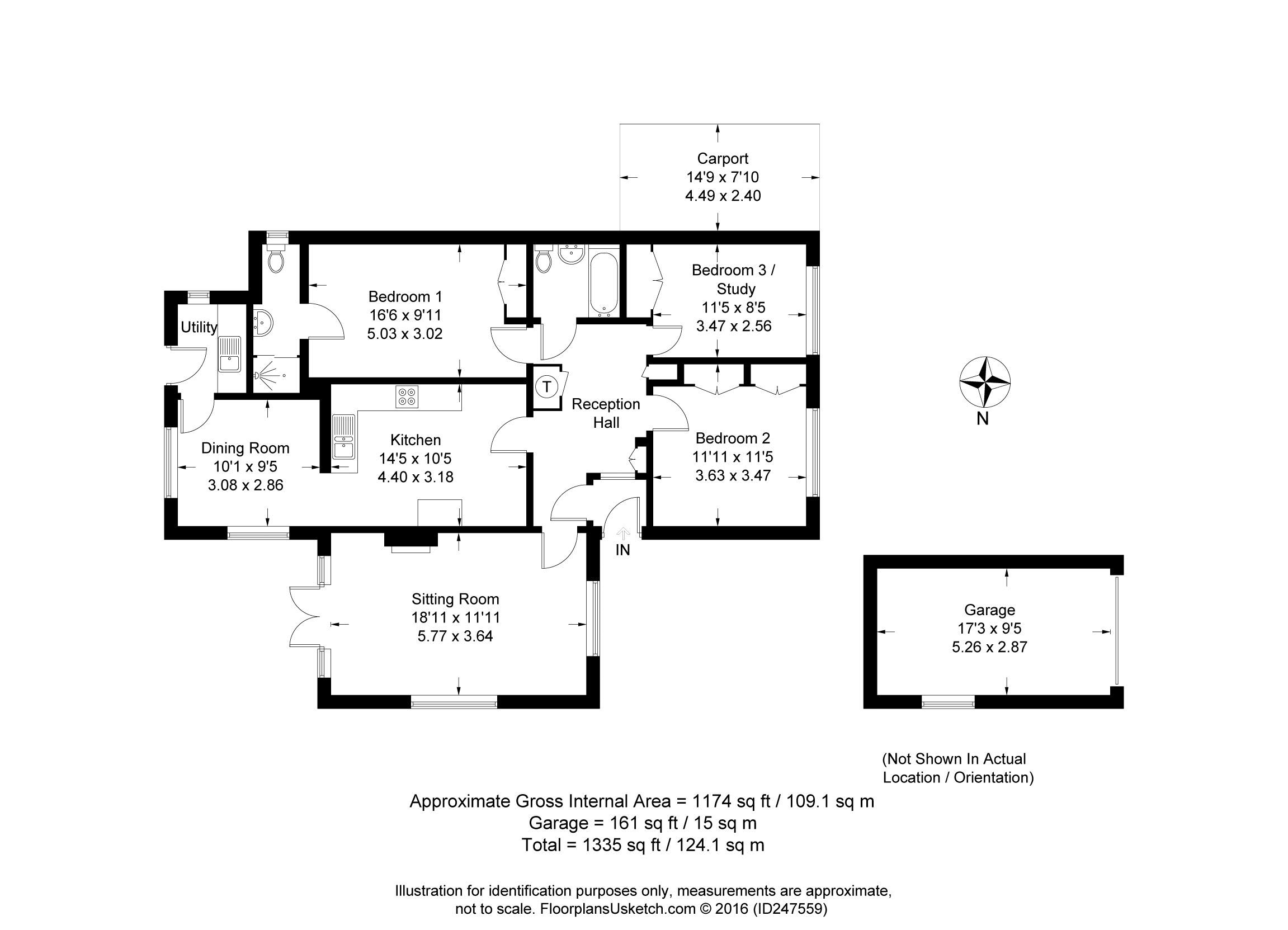 An immaculately presented detached bungalow that has been significantly improved by the current owners. Together with an entrance porch and a spacious hall, there is a triple aspect living room with wall mounted gas flame effect fire and double glazed doors leading to patio and rear garden. The kitchen has been extended to provide an additional dining area and completely refitted with a comprehensive range of cupboards together with a built in electric double oven, induction hob, extractor hood and plumbing for dishwasher. Alongside is a separate utility room. The main bedroom benefits from a refitted en suite shower room, two further double bedrooms (one currently used as a study) and a refitted bathroom. The garden has been lovingly tended and has been planted with a wide variety of plants and shrubs in various shaped borders alongside areas of lawn.
