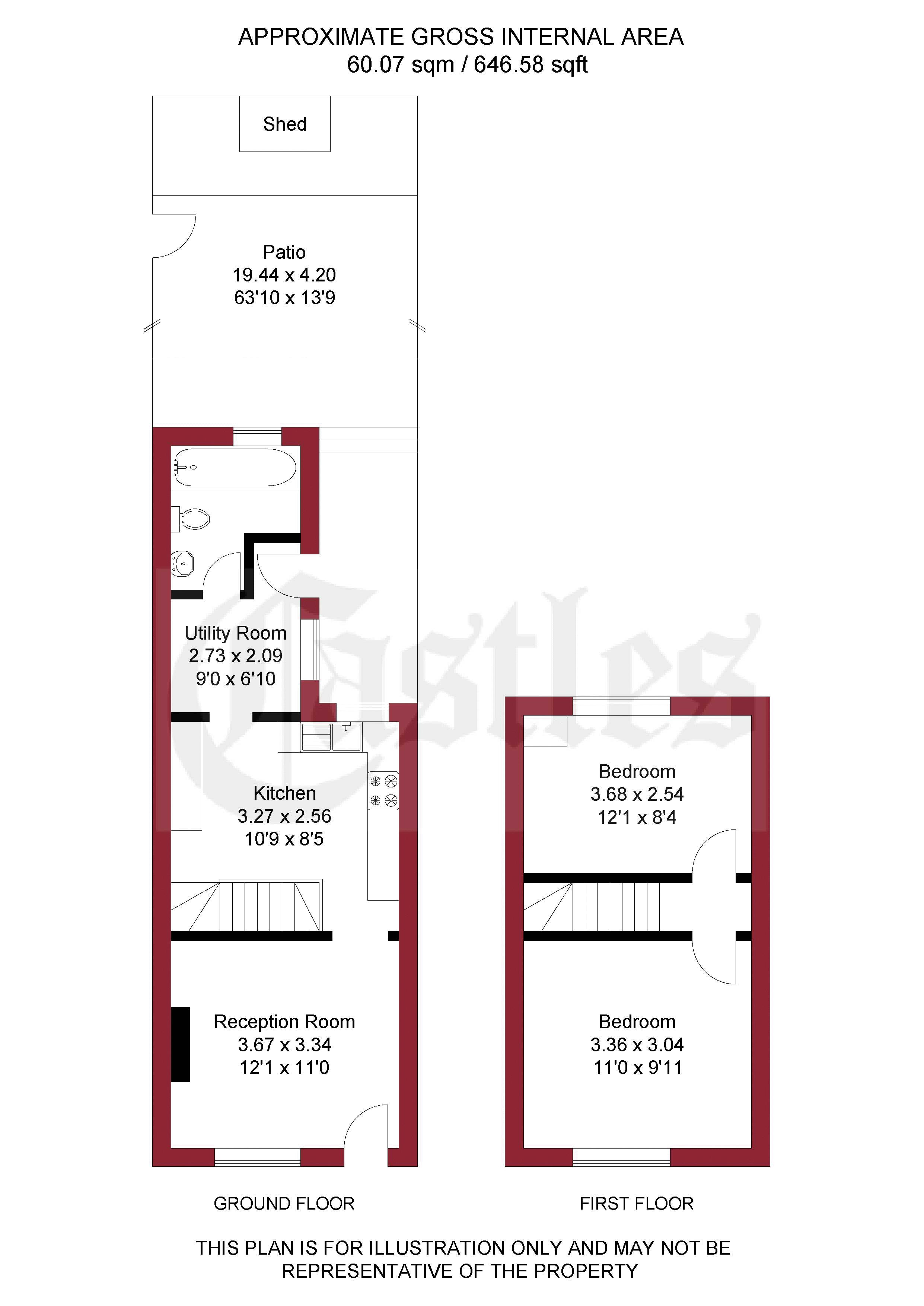 The ground floor features a bright living area with traditional features and a separate modern kitchen and a contemporary family bathroom, access to the rear garden. Upstairs, there are two good-sized bedrooms.