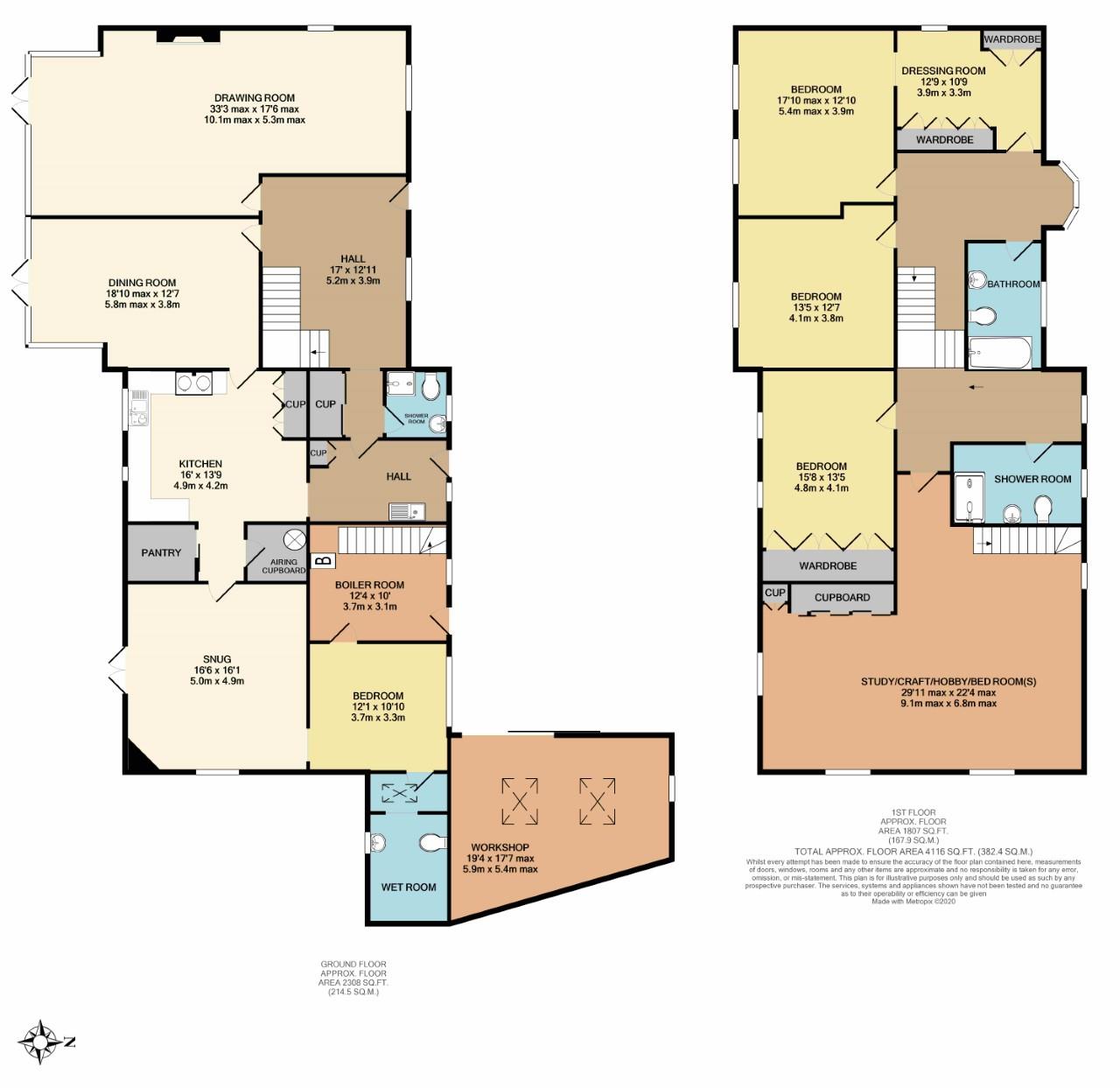 On the first floor is the Master bedroom overlooking the gardens with a dressing room. There are four further double bedrooms and 1 bathroom and 1 large showroom. This room could be split to provide 2 further bedrooms if necessary.
