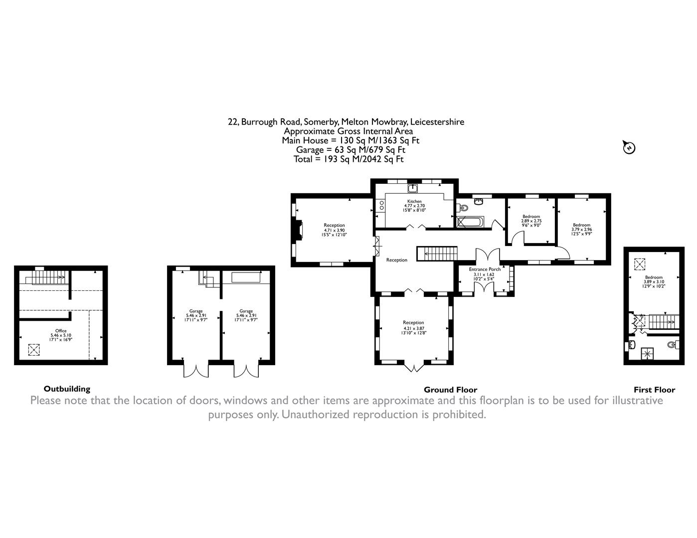 Ground Floor - The ground floor features an oak-framed entrance porch, a breakfast kitchen, three reception rooms, two double bedrooms, and a bathroom. Character runs throughout with a mix of stone and timber flooring, exposed beams, and brickwork. The breakfast kitchen, located at the rear, includes shaker-style fitted units, integrated appliances, an Aga, and a built-in L-shaped dining pew.