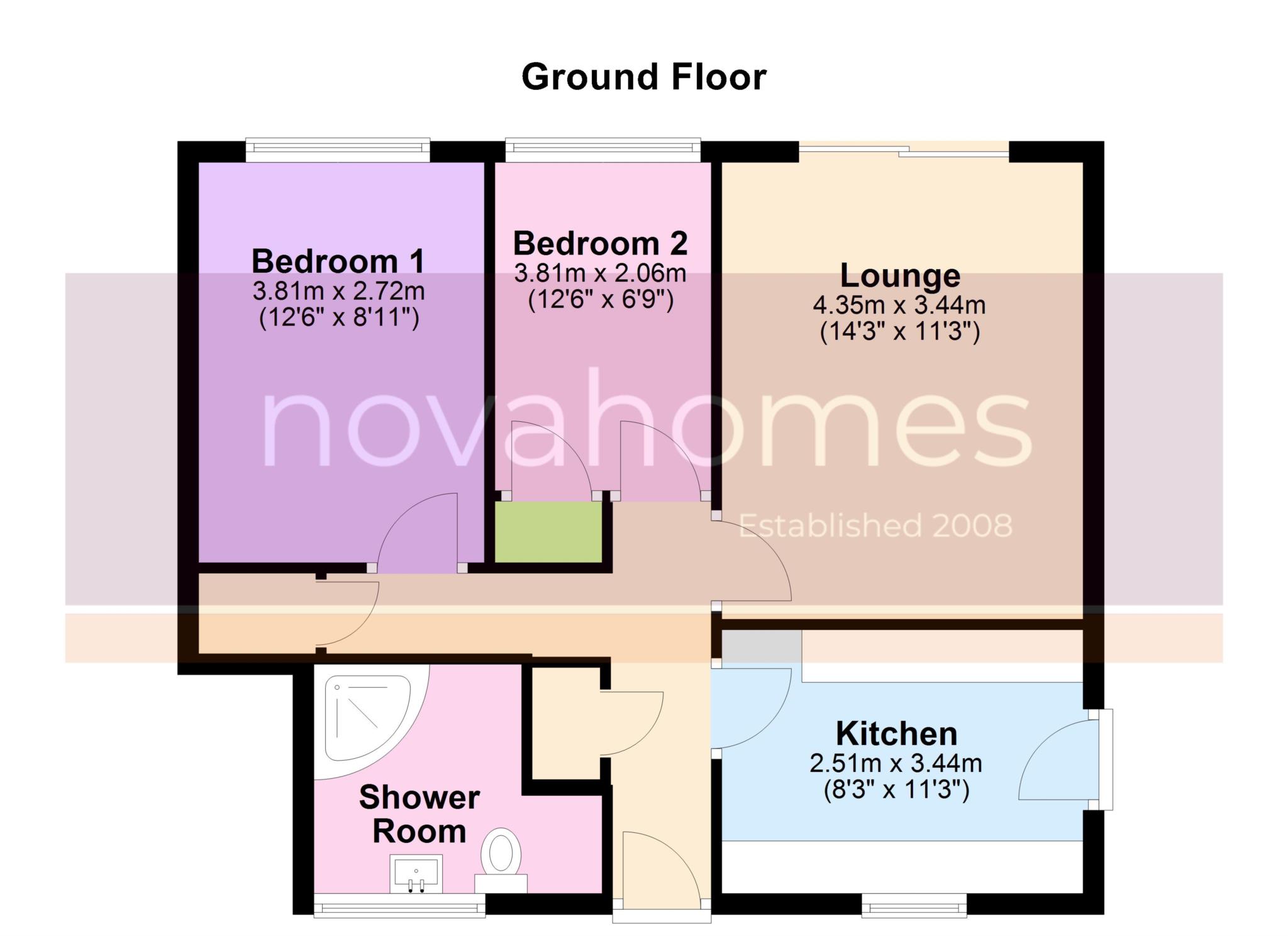 The property opens via a private front door into a bright hallway that connects all living areas. At the far end, you`ll find a generously proportioned lounge (4.35m x 3.44m / 14`3" x 11`3"), beautifully lit by large sliding patio doors which lead directly onto the rear garden.