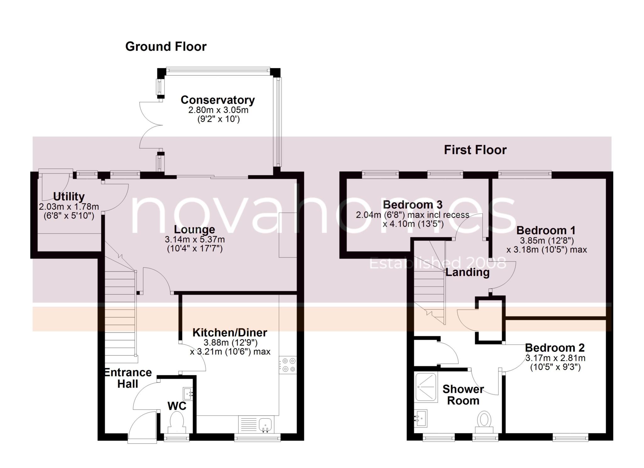 Utility (2.03m x 1.78m / 6`8` x 5`10`) Practical storage and laundry space, side access door.