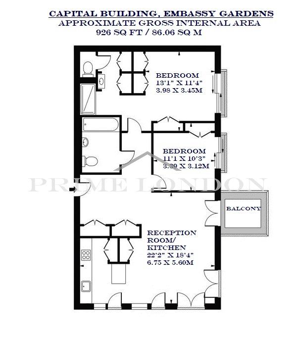 An extremely well finished and contemporary dual aspect two bedroom apartment set within the sought after Capital Building, Embassy Gardens, comes fully furnished and is available to rent through Prime London.