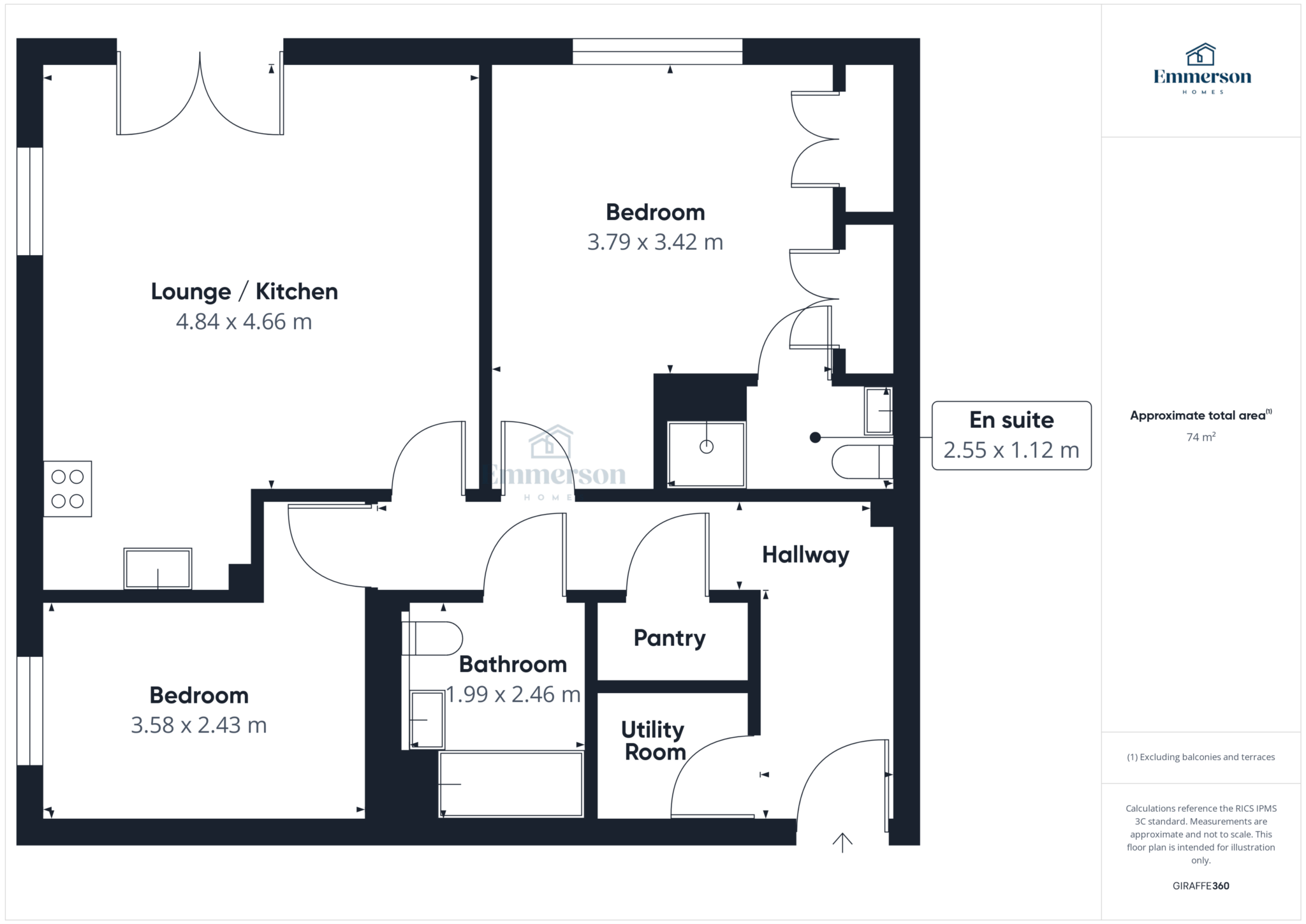 The accommodation comprises: hallway complete with ample storage facilities; open plan living area with Juliet balcony just perfect for soaking up the summer sun. The modern kitchen has integrated oven, hob, extractor hood, dish washer and fridge/freezer. There are two double bedrooms; principle with en-suite shower room; and a family bathroom featuring a white suite three piece suite.