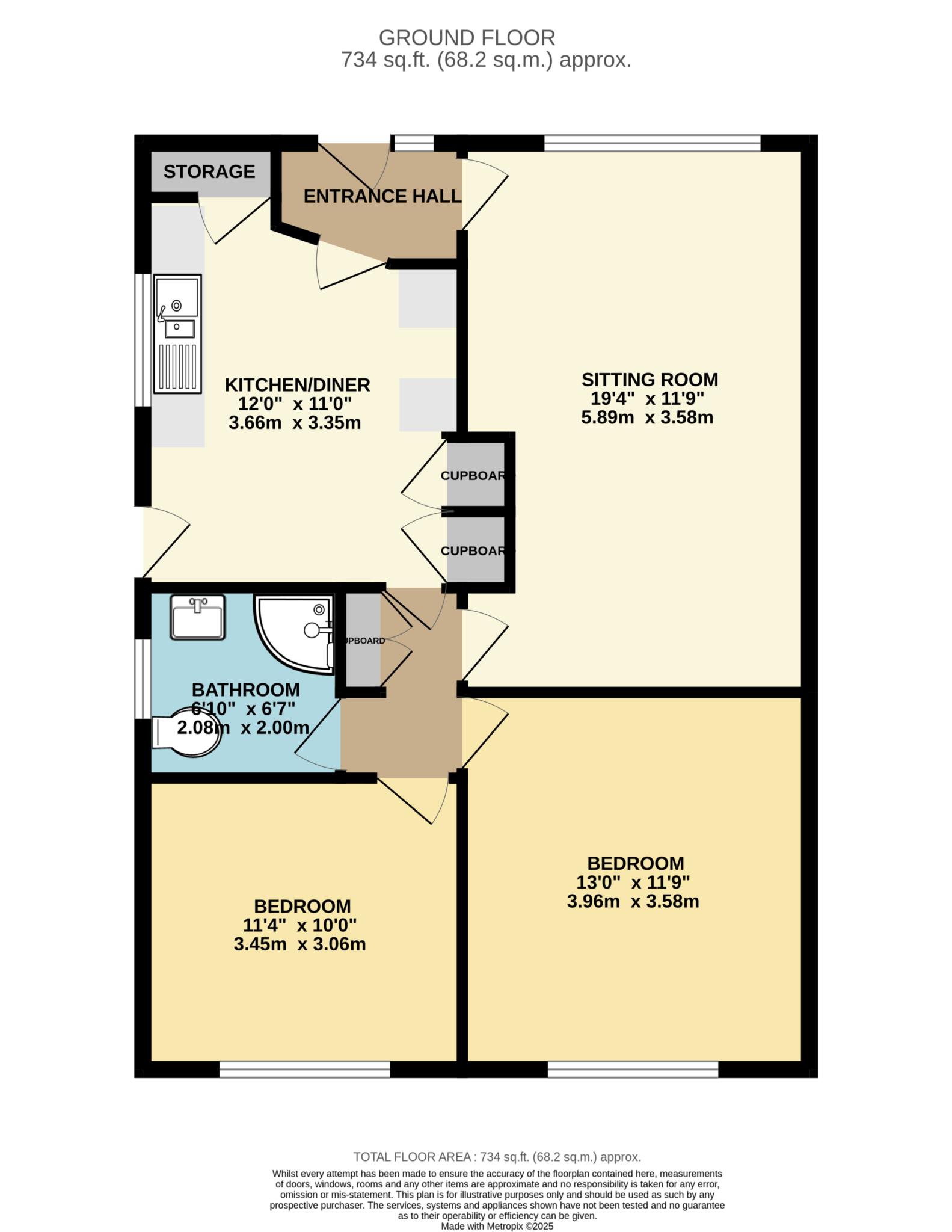 19`4" X 11`9" (5.89m X 3.58m)