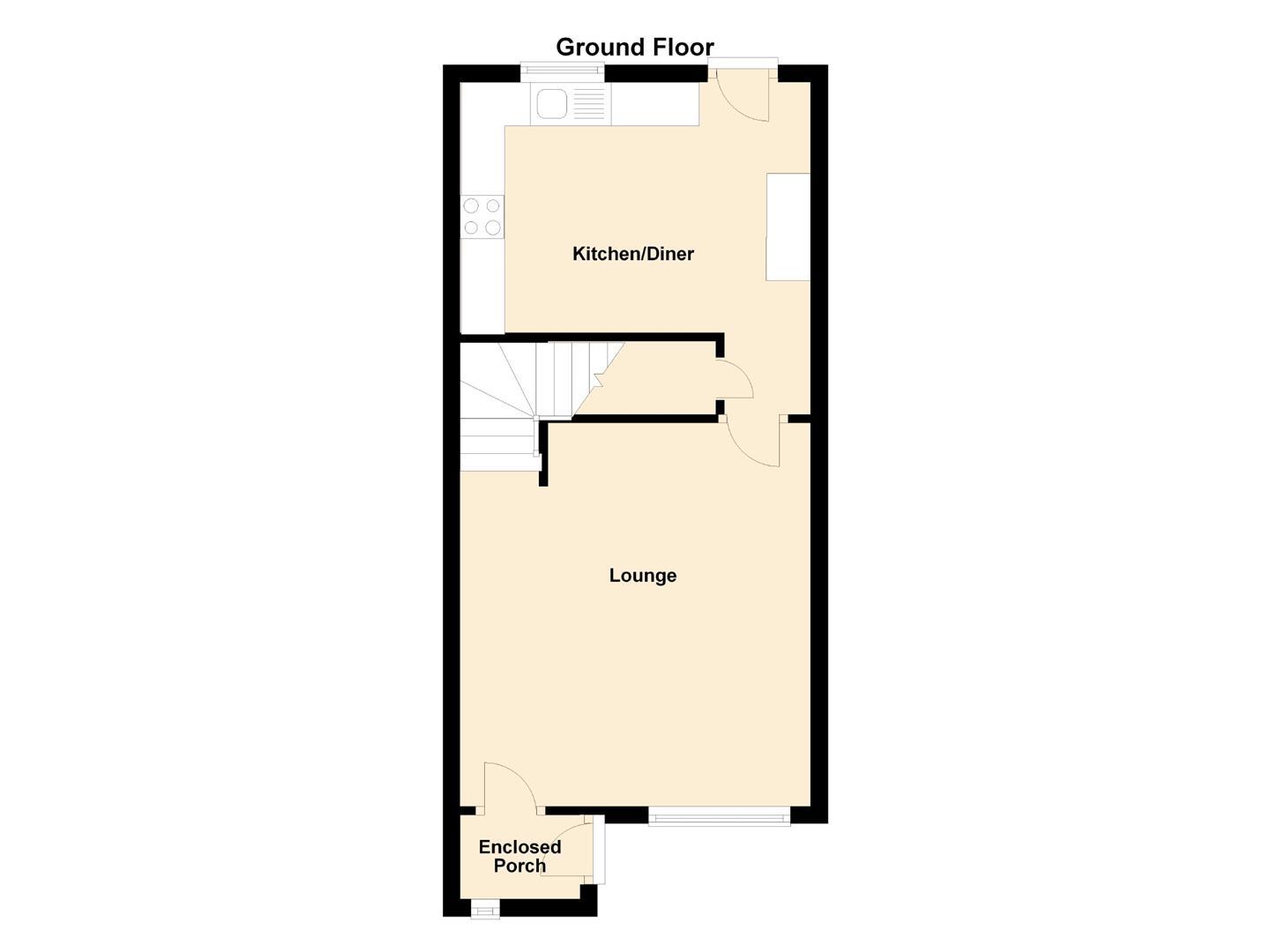 The internal accommodation briefly comprises an entrance porch which leads into a welcoming lounge featuring an open-plan staircase, creating a bright and contemporary feel. To the rear is a spacious dining kitchen, fitted with a range of modern units and providing direct access to the rear yard. To the first floor, there are two bedrooms, both well presented, along with a modern family bathroom WC fitted with a white suite and an overhead shower. Further benefits include gas central heating and double glazing.