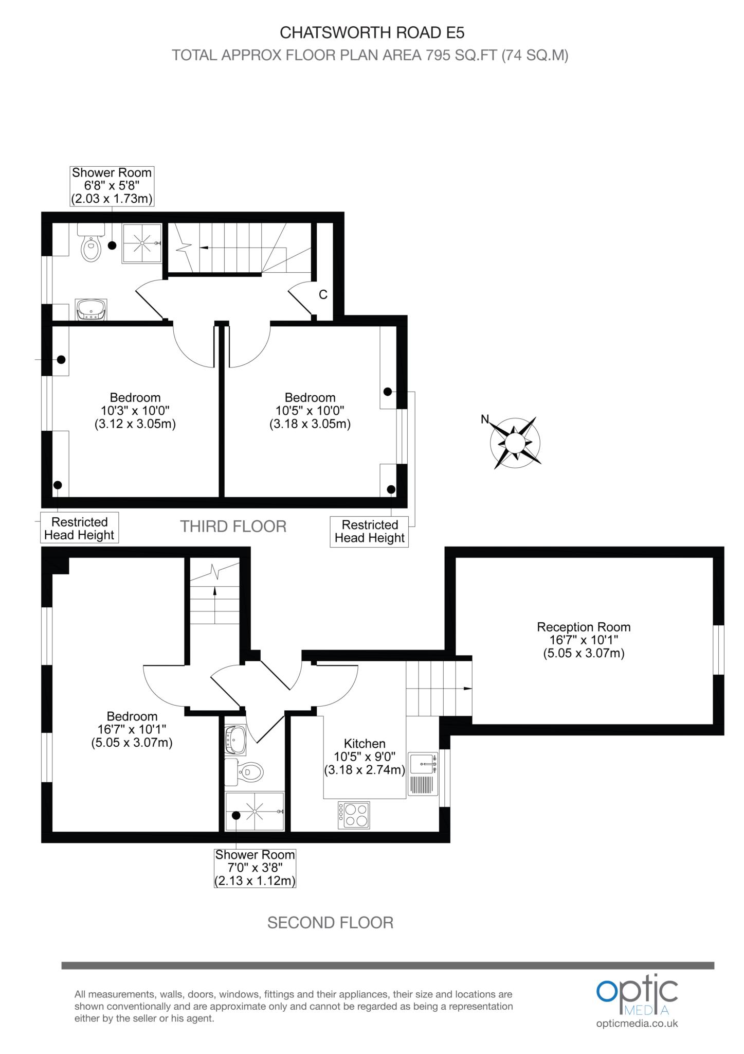 As you enter the apartment, you are greeted by a hallway which leads to the newly fitted kitchen which has inbuilt appliances and a large window allowing for plenty of light. This then drops down to the reception / dining area flooded with natural light from the large window, perfect for entertaining guests or relaxing after a long day. On this floor there is a large bedroom with double windows filling the space with light and providing ample storage. Lastly on this floor you will find the first of the shower rooms which has been tastefully finished to a high standard. On the upper floor you will find two further double bedrooms and the second shower room, again finished to a high standard with modern fixtures and fittings.