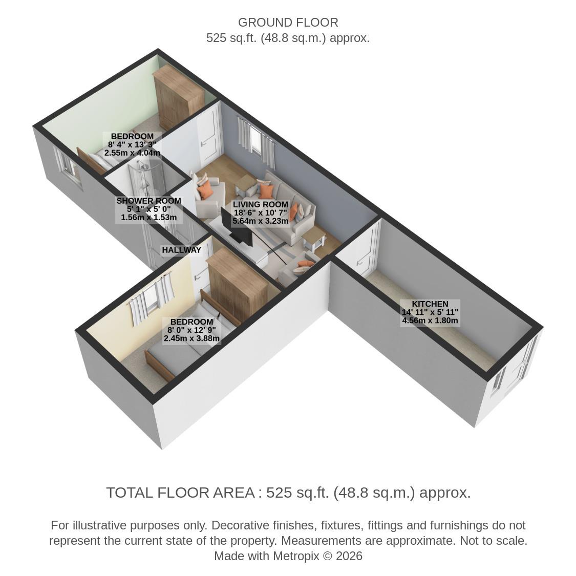 c.14`8 x 5`10 (4.03m x 2.45m)