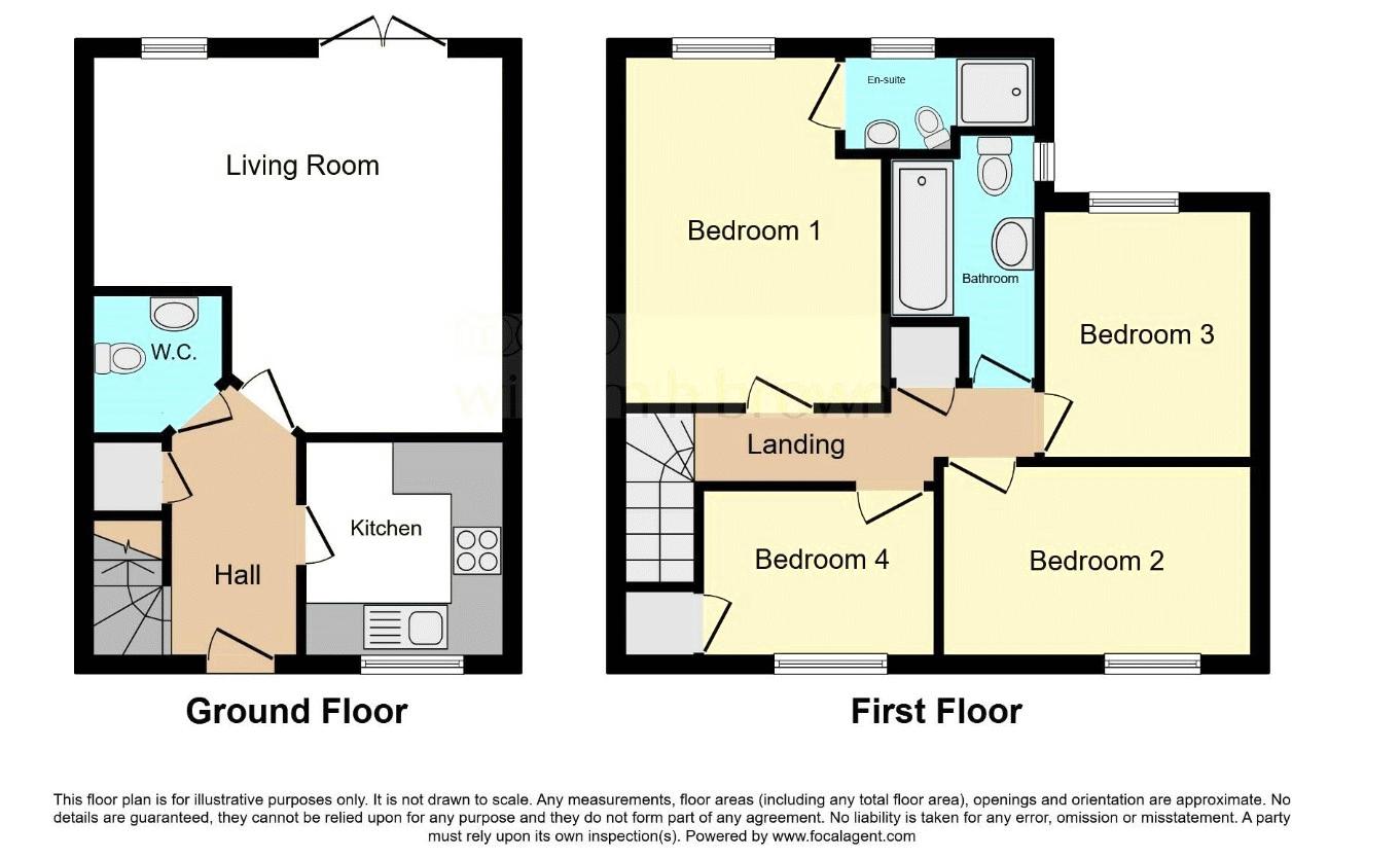 The ground floor features a bright, open-plan lounge and dining area, perfect for family life and entertaining. The adjoining kitchen is well-equipped with ample storage and workspace. A convenient downstairs W.C. adds practicality.