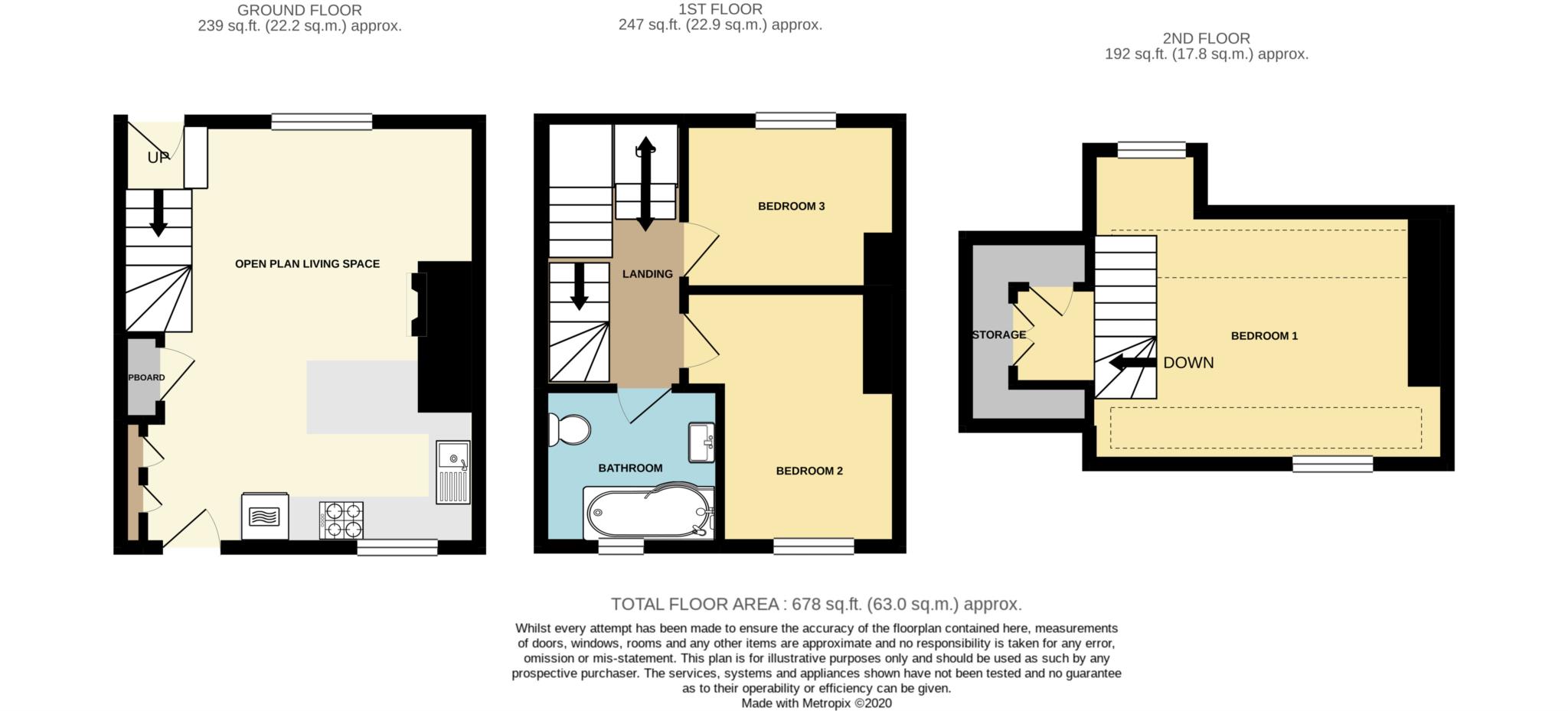 This charming period cottage is situated within easy reach of the town centre and offers accommodation bursting with character arranged over three floors. On the ground floor there is a lovely open plan living room/kitchen, the kitchen area is to the front of the property and is fitted with a range of units with oak work surfaces and there is also a useful breakfast bar. The living room is open plan to the kitchen and has a number of period features including; exposed beams and a feature fireplace with wood burning stove. On the first floor there are two bedrooms and a bathroom. A stairway leads up from the landing to the second floor and a further bedroom. This is a light bright room with twin aspect windows, Storage is provided via an unusual and quirky recess elevated behind the stairwell. Here you will discover built in hanging and drawer space. Outside you will find a courtyard garden to the rear of the house with gated access. It is mostly paved and has some raised beds. The town centre is within a very pleasant 10 minute walk down Vicarage Street. All in all then a lovely little cottage in a very convenient location which is also being sold with the benefit of no onward chain.