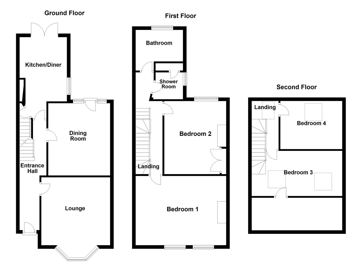 First Floor Landing - Central heating radiator, doors to bedrooms one and two, bathroom and the shower room. Stairs to second floor landing.