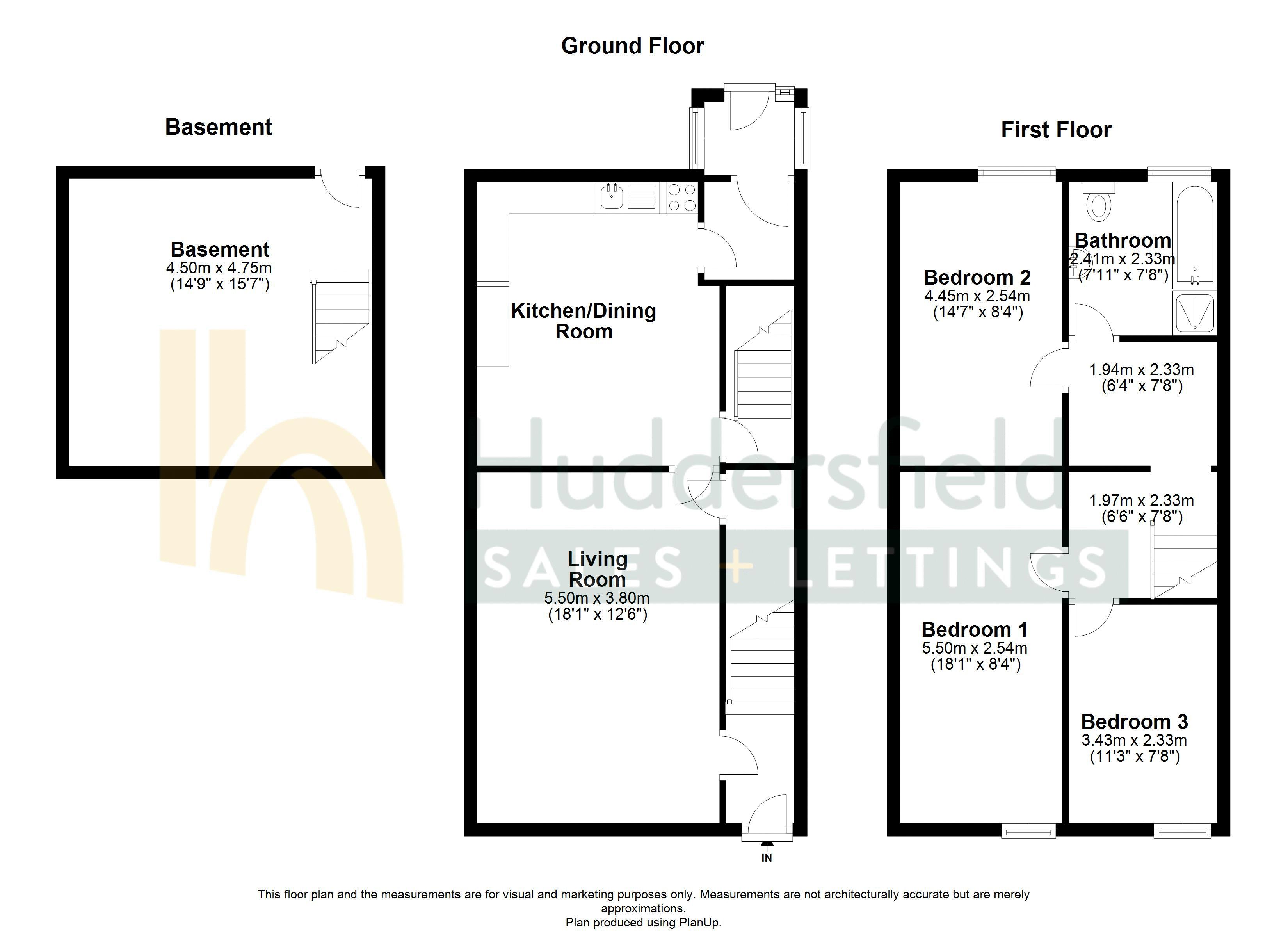To the rear, the large kitchen/diner offers ample space for dining and entertaining, with access to the garden and stairs leading down to a sizeable basement. This basement is currently used for storage but could be converted into additional living space or a home office. It also benefits from external access via the rear of the property.