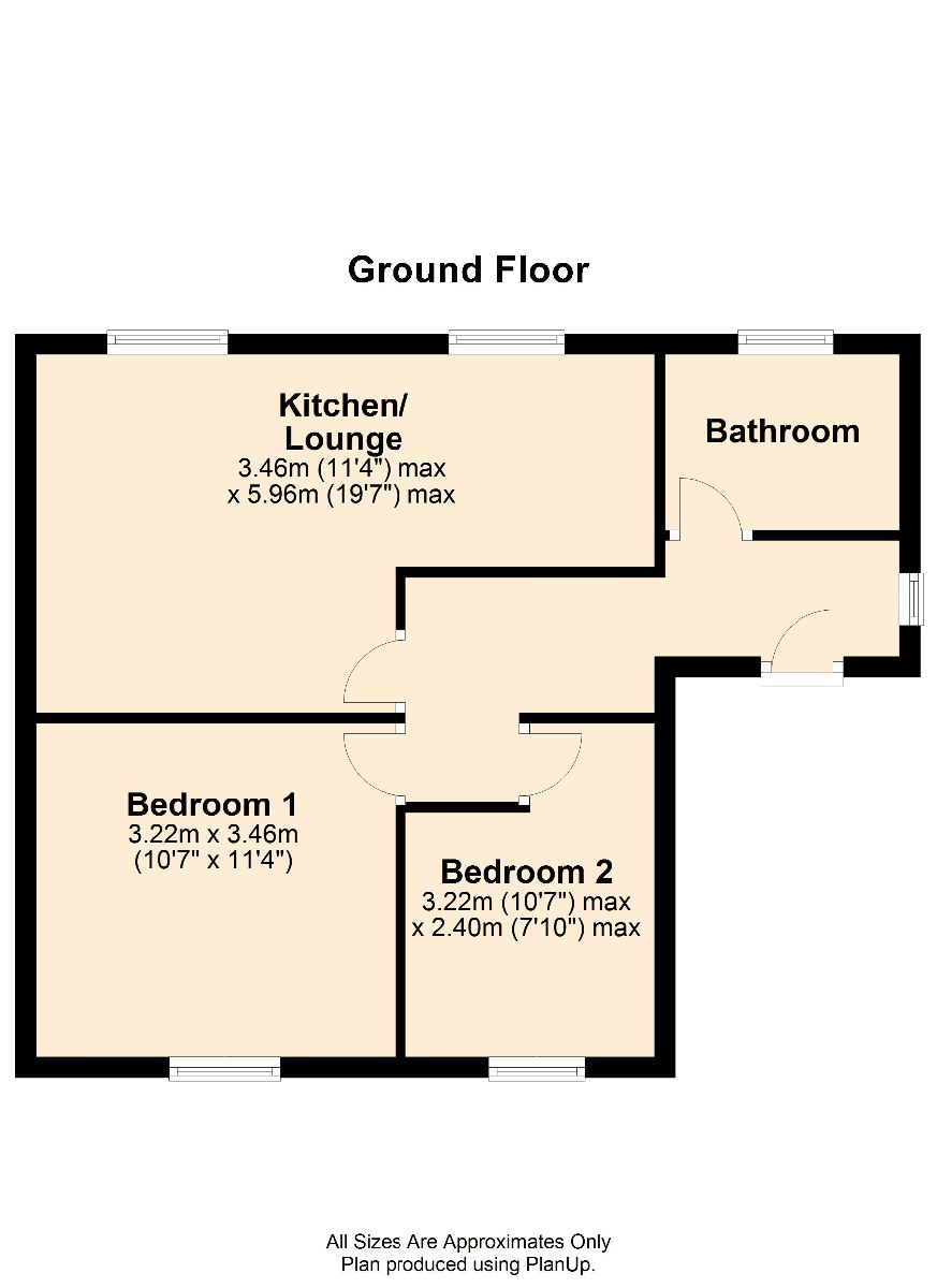 5.96m (max) x 3.46m (max) (19'7 (max) x 11'4 (max)). Two uPVC sealed unit double glazed windows to rear.