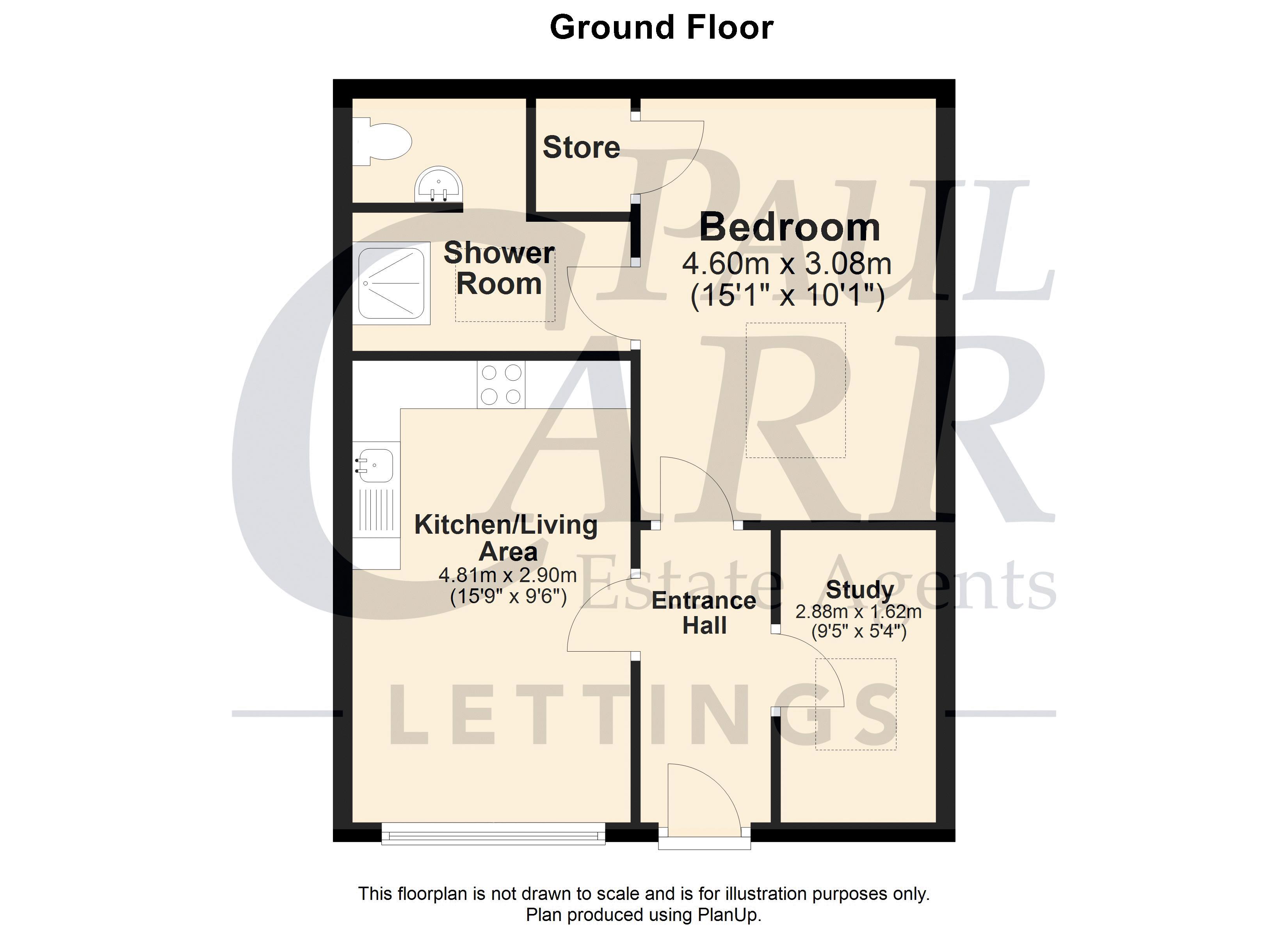 Access to the property is via a private entrance off Clarence Road with off-road parking. An entrance hall features doors to; a bonus study/dressing room, a spacious & modern kitchen/living area with electric cooker, fridge freezer and plumbing for a washing machine, and a roomy bedroom with skylight and handy storage cupboard. Off the bedroom you will find the shower room featuring a shower cubicle, WC & wash hand basin.