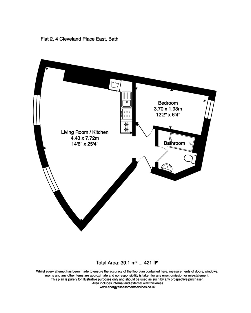 The apartment offers an open plan living room and kitchen, with two large sash windows allowing lots of natural light to flood into the space. The kitchen is fitted and includes a fridge/freezer and washing machine. A recently installed shower room and a double bedroom are both located to the rear.