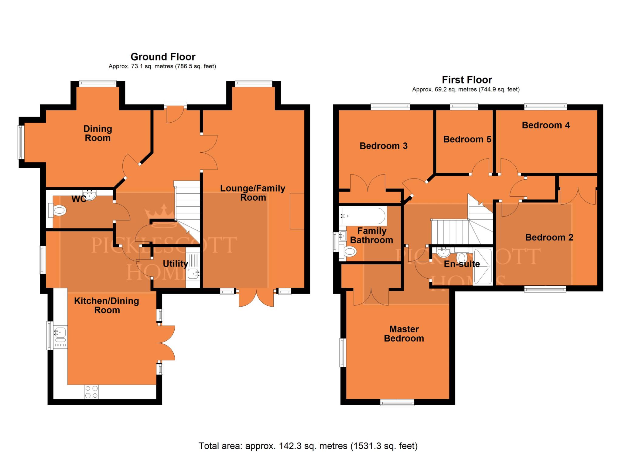 To the first floor there is a family bathroom and five well proportioned bedrooms with three of the bedrooms benefiting from built in wardrobes to include the main bedroom. The main bedroom again feels separate from the house with its own en suite and fitted wardrobes.