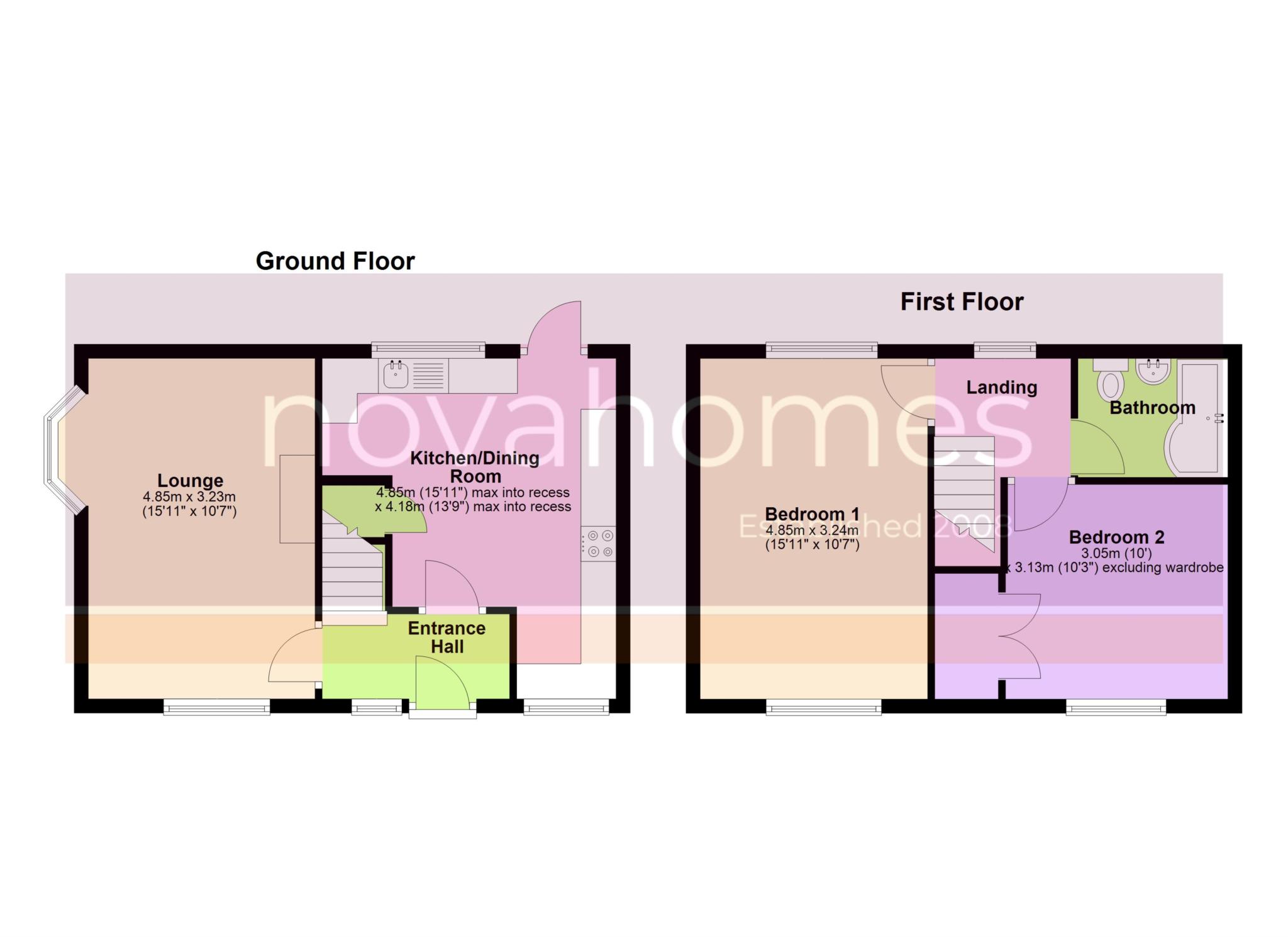 4.85m x 4.18m (15`11" x 13`9") max into recess