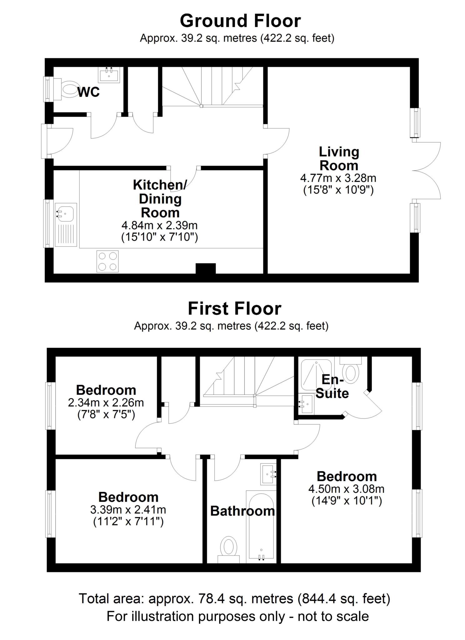The first floor has two double bedrooms, with the master bedroom enjoying the added benefit of an en suite shower room with a standing shower. There is also a single bedroom, ideal for use as a study, nursery, or dressing room, along with a modern family bathroom fitted with an over-the-bath shower.