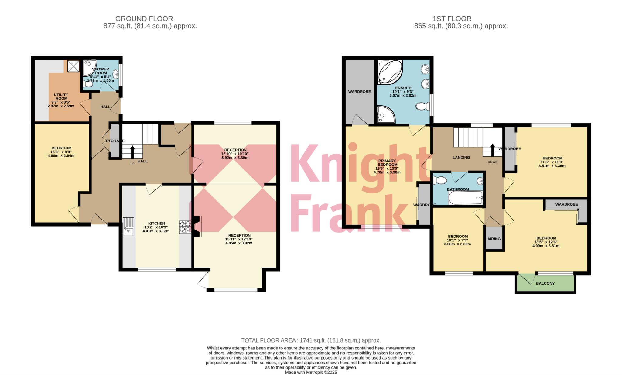 Upstairs, the spacious principal bedroom enjoys its own dressing area and a large en suite bathroom. Two further double bedrooms benefit from fitted wardrobes, and an additional single bedroom offers the option of a fifth bedroom, nursery or dedicated study. One of the double bedrooms also features access to a private balcony.