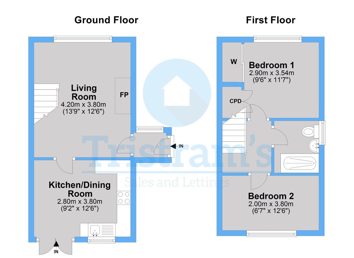 BEDROOM ONE 9' 6" x 11' 5" (2.9m x 3.5m) A double bedroom, neutrally decorated with new carpets. Views to the front of the property via double glazed windows. Built in wardrobe with sliding doors and storage cupboard where the hot water tank is located.