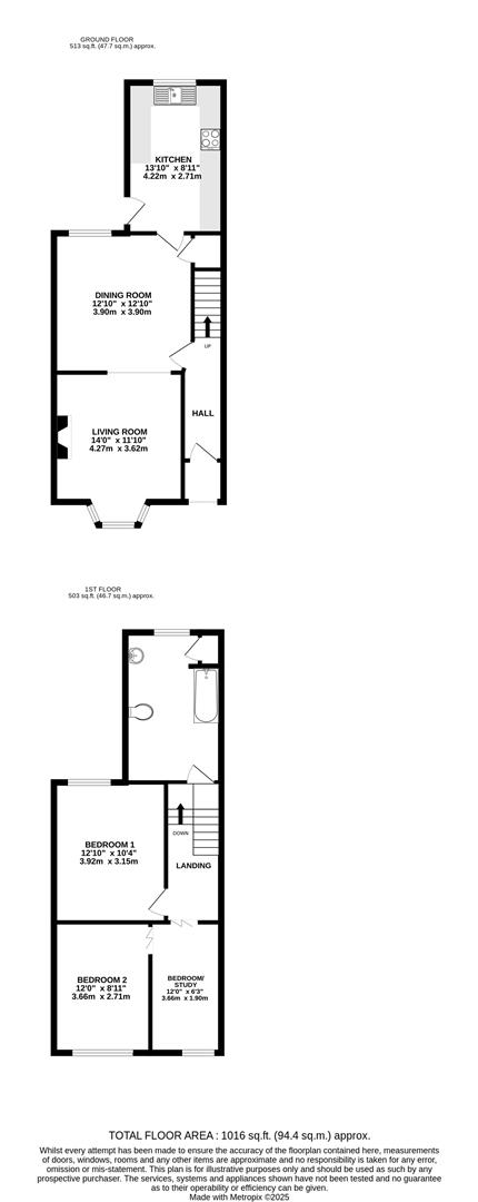 To the first floor, the property offers two spacious double bedrooms and a versatile study/third bedroom, ideal for use as a home office or nursery.