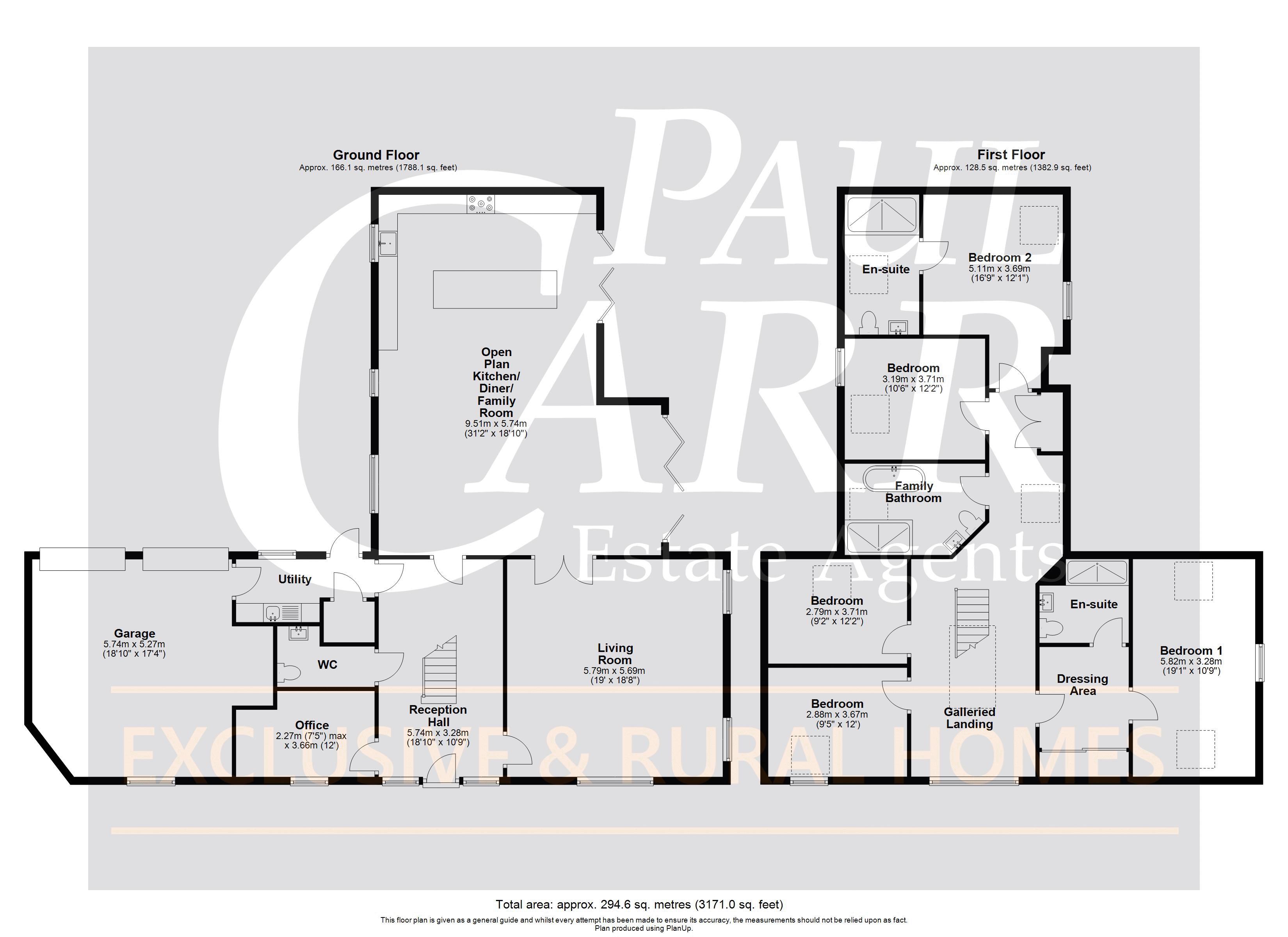 To the first floor, a bright and airy galleried landing gives access to the bedrooms and family bathroom. The principal bedroom features a dressing area with fitted wardrobes and an en-suite with shower, low level wc and wash hand basin. The bedroom enjoys views over the rear garden and beyond towards woodland and lakes. The guest bedroom benefits from an en-suite with shower cubicle, low level wc and wash hand basin and also enjoys views over the rear. The three remaining bedrooms all have access to the luxurious family bathroom with a free-standing bath, separate shower cubicle, low level wc and wash hand basin.