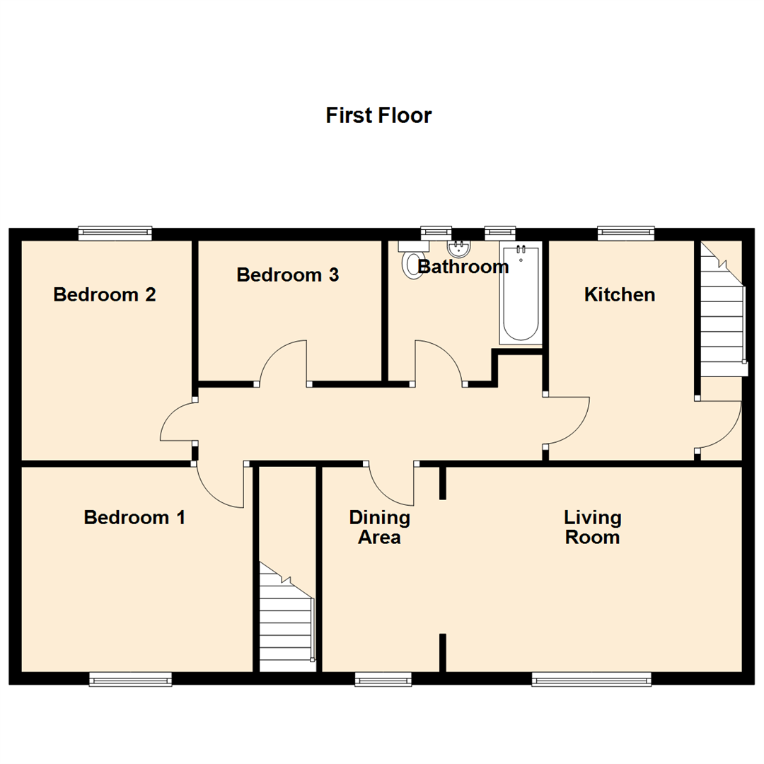 The property is accessed via an entrance with stairs to the first-floor landing and features three well-proportioned bedrooms, a bright and airy living dining room, a well-appointed kitchen, and a modern bathroom WC. Further benefits include gas central heating, double glazing, and storage space in the loft. Externally there is a good sized garden to the rear.
