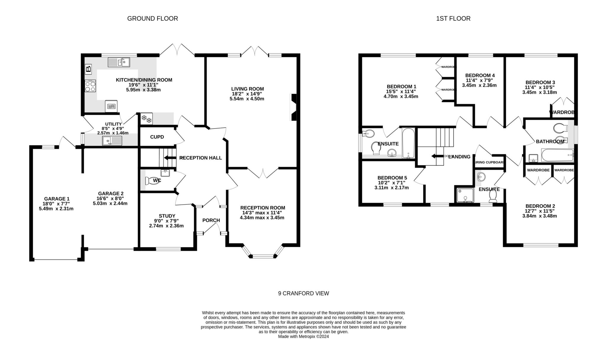 On the first floor are five bedrooms, two of which benefit from en-suite facilities, along with a separate family bathroom.