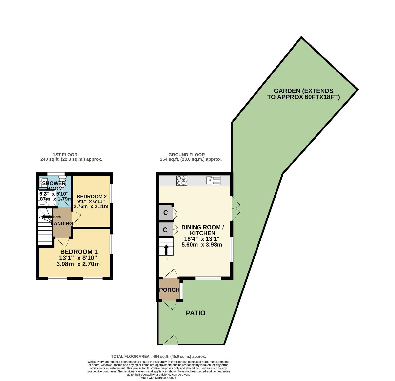 BEDROOM 2: - 9'0" (2.74m) x 7'0" (2.13m)
