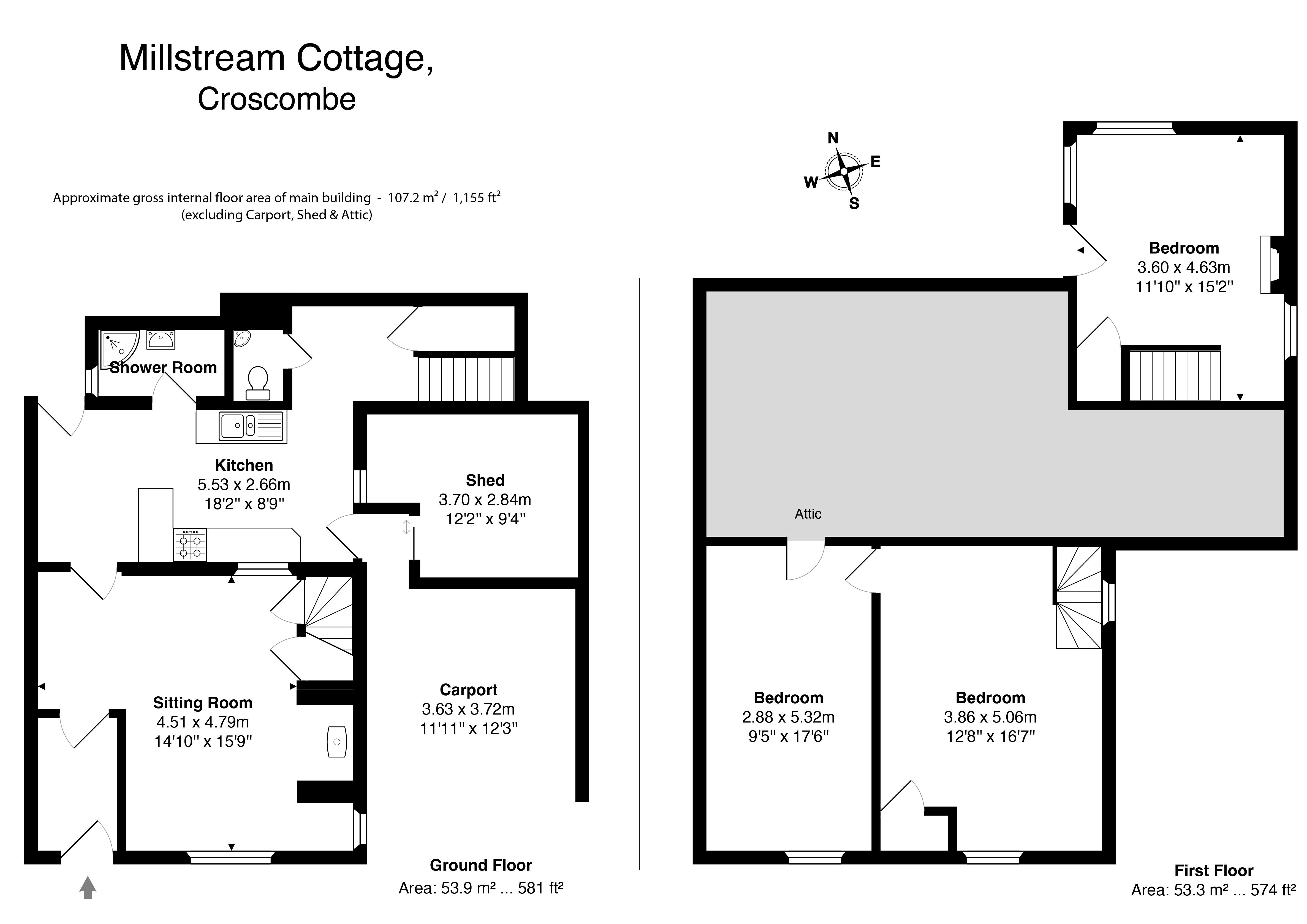 To the back of the kitchen is the shower room, a large understairs cupboard, and addition cloakroom. Stairs rise from the back of the kitchen to a separate stone-built room that adjoins the garden. This is a versatile space that could be used as a bedroom. It has a triple aspect and a half-glazed door leads to the garden.In the sitting room, stairs rise to the other 2 bedrooms. It is worth noting that in the second bedroom a door opens to a large area of attic storage above the kitchen.