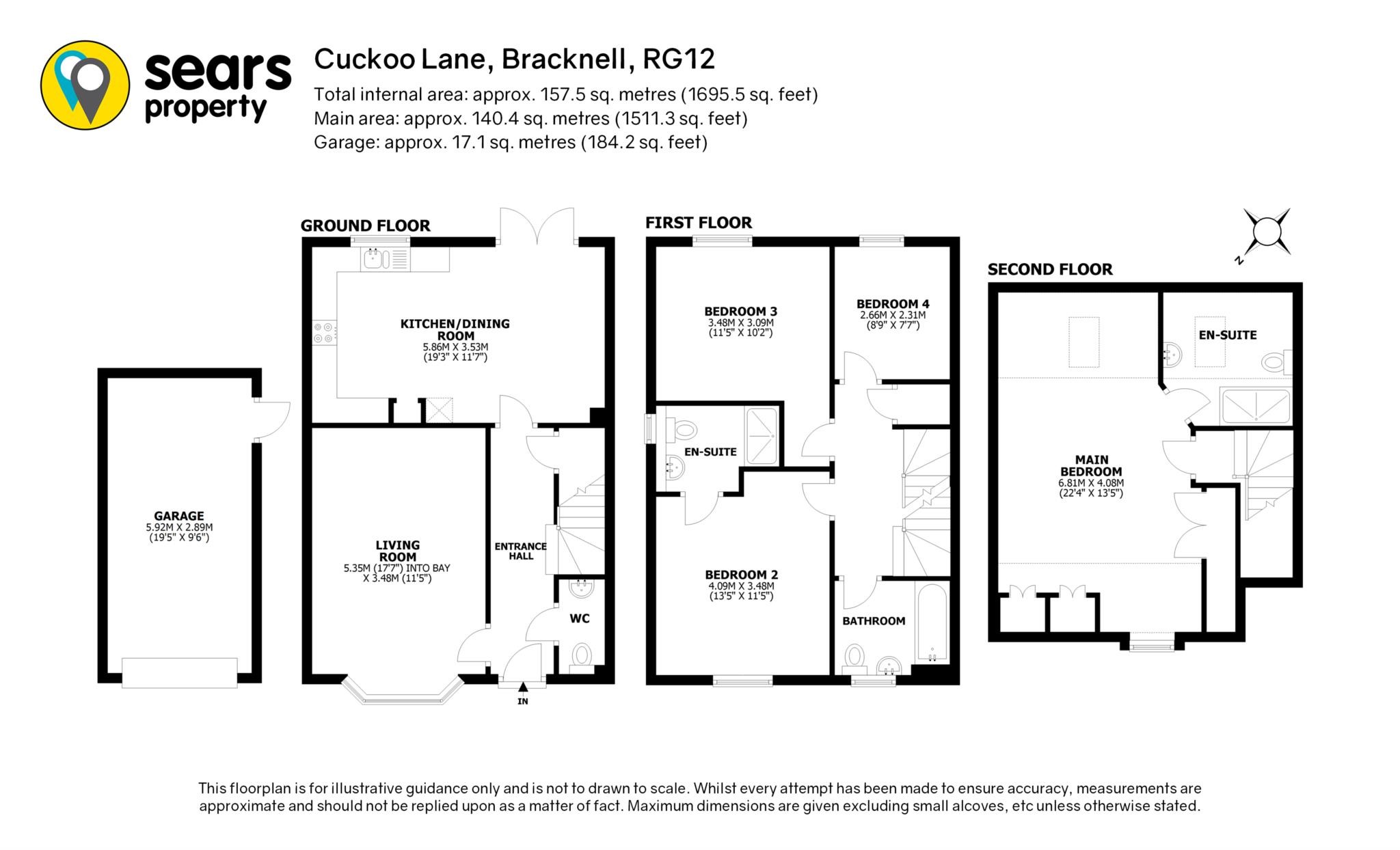 To the first floor are three bedrooms, two are large doubles with one benefiting an en-suite bathroom. A smaller fourth bedrooms and a main family bathroom. The top floor is the whole master suite, including a large bedroom and also en-suite.
