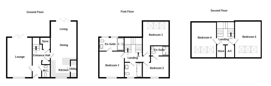 Upstairs, the principal suite features a luxurious en-suite with a walk-in shower, while two further generous bedrooms (one with its own en-suite) provide comfort and flexibility. On the second floor, two large rooms can serve as additional bedrooms, a study, games room, or even a home cinema — adaptable to every stage of family life.