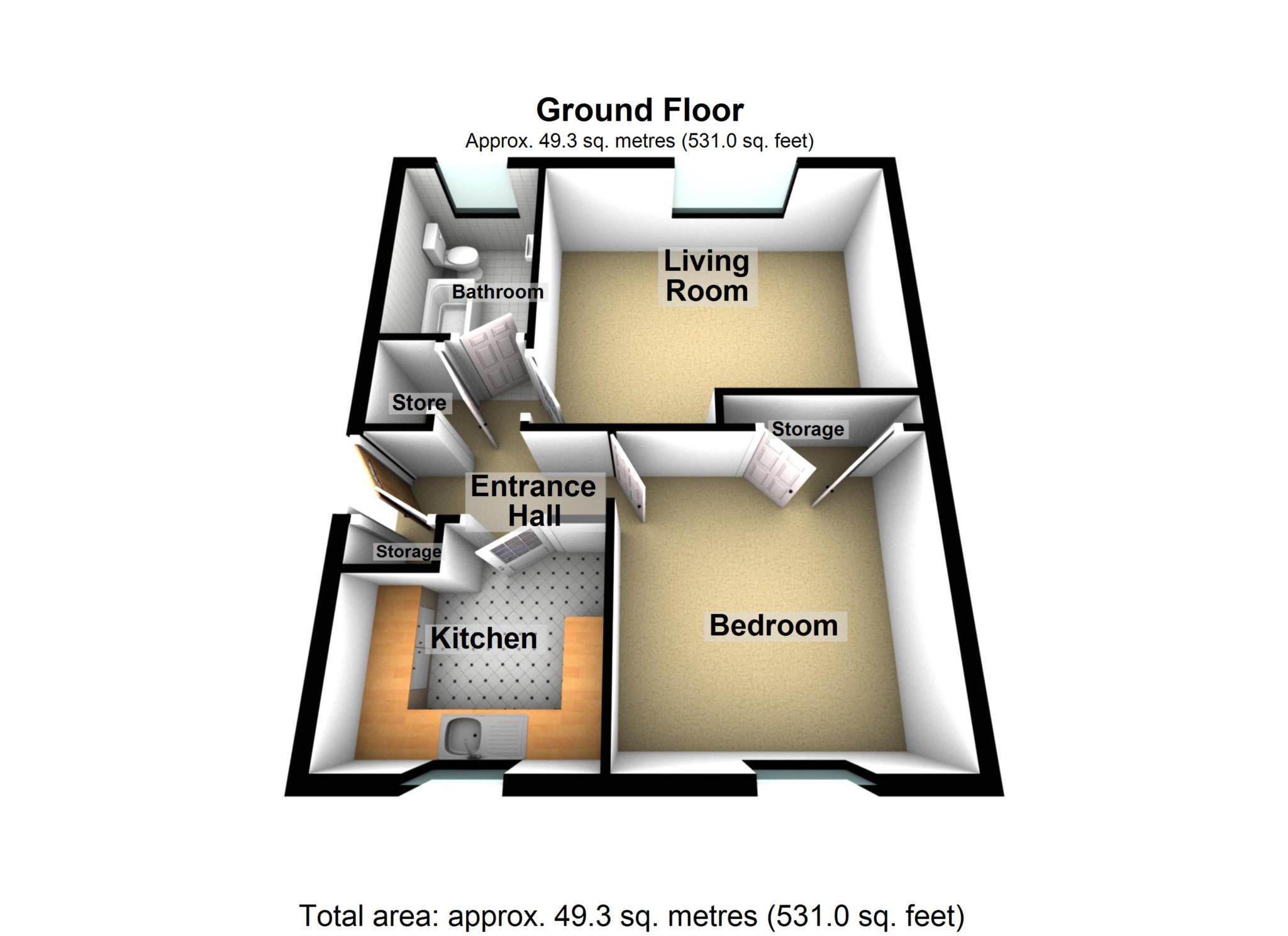 Inside the accommodation you will find a large 15ft Living Room, spacious Double Bedroom, separate Kitchen and a modern family Bathroom.