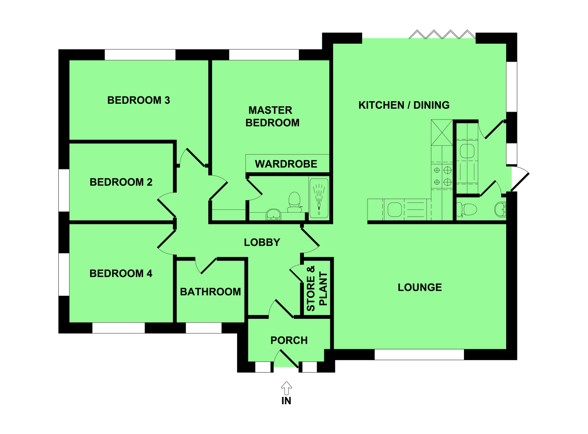 Details - **STUNNING NEW BUILD BUNGALOW** Bycroft Estate Agents are delighted to present this stunning new build bungalow property within this exclusive village development. Set over one level offering a welcoming entrance hallway, plant room, four bedroom accommodation, en suite to the principal bedroom and family bathroom. Living accommodation consisting of a stunning vaulted ceiling sitting room with full height atrium style window flowing into a impressive open plan kitchen/dining area arriving in a further full height ceiling with atrium glass to the rear linking onto the rear garden via anthracite bi-folding doors, supported by a utility room and cloakroom. The property benefits from flush casement framed double glazing and underfloor heating system via air source heat pump. To the outside of the property is a impressive frontage with front garden area, paved pathway approach to the front door, block paved driveway leading to double garage with supplementary parking area to the side and further parking area on the adjacent side of the bungalow giving close access to the utility room door. To the rear of the property is an enclosed garden laid mainly to lawn with porcelain tiled pathways and patio, a raised slate garden with established trees and stylish brick retaining wall. The gardens wrap around to the side of the property with a further lawned area.