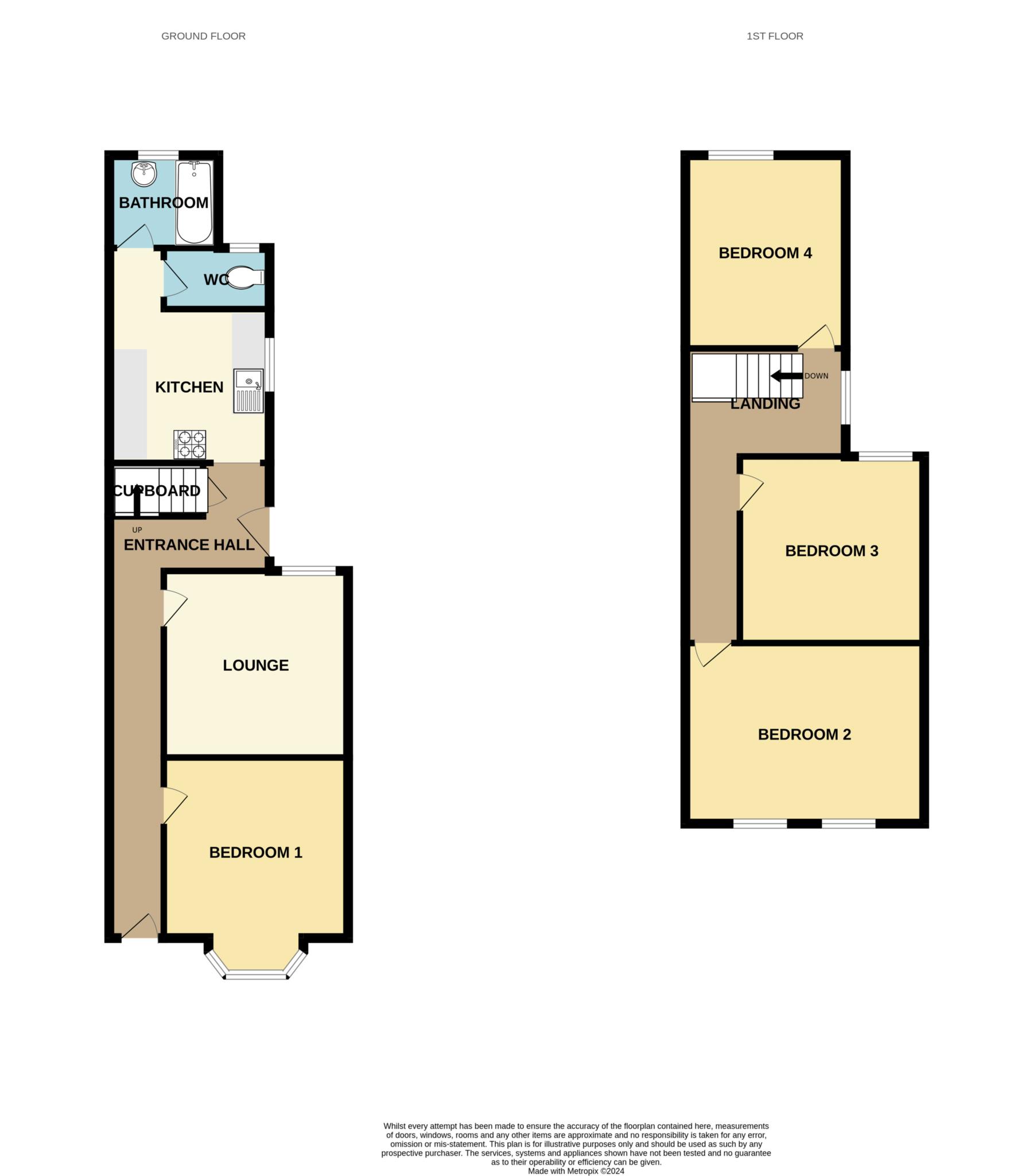 The property comprises of entrance hall, lounge, fully equipped kitchen, 4 double bedrooms and a ground floor bathroom with a separate W.C.