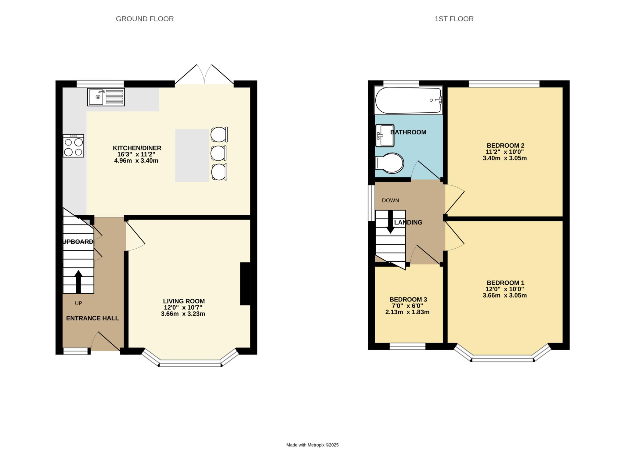 Upstairs, the home comprises two generously sized double bedrooms and a further single bedroom, perfect for use as a child`s room, home office, or guest space. The family bathroom is well-appointed and in good condition.